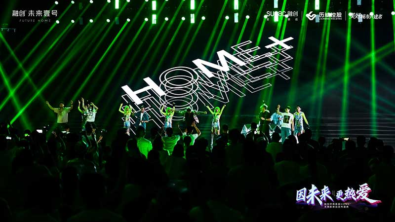融创济南首个HOME+未来系新品发布会现场完全颠覆传统概念,结合新生代的炫酷型格,融入原创嘻哈、爆梗脱口秀、重金属、潮流魔术等元素,以超未来时空之旅的灵感,跨界定制一座HOME+生活的“头号潮玩体验圣地”。宇宙演说家实力登场,将超越时代想象的HOME+新生代社区、“潮流、健康、智能、空间、共享”的生活IP,形成一场精彩的脱口秀,辛辣爆梗,金句频出,现场潮人纷纷“疯狂打call”!百变、自然、精致、艺术的秀场花园,先锋型格的潮流建筑,被演绎成超燃说唱rap。听觉与视觉的冲击,自然与建筑的缤纷想象,以及MAX舞力值,让发布会现场瞬间开躁。