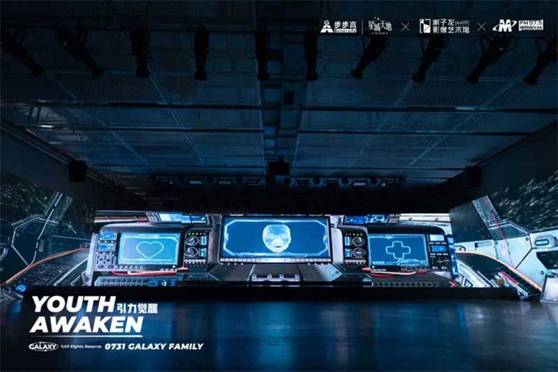 跟随「着陆Landing」3D影像秀走进Galaxy Family的IP故事,光影与乐声的立体视听享受,即使在线上也能get现场的同款沉浸体验,一定不能错过!以宇宙为主题的背景下,依据旁白指示抵达宇宙空间站,伴随着场馆内浮动的暗香——这美妙的香气,是从银河深处飘来的吗?巨幕荧屏下蓝色灯光渐次亮起,天幕上的浩瀚星辰近在眼前,眨眼之间,你仿佛已置身于宇宙太空舱中完成突破想象的超震撼“航程跳跃”,只待一声令下,便能再次启航寻找万物间的美好引力。