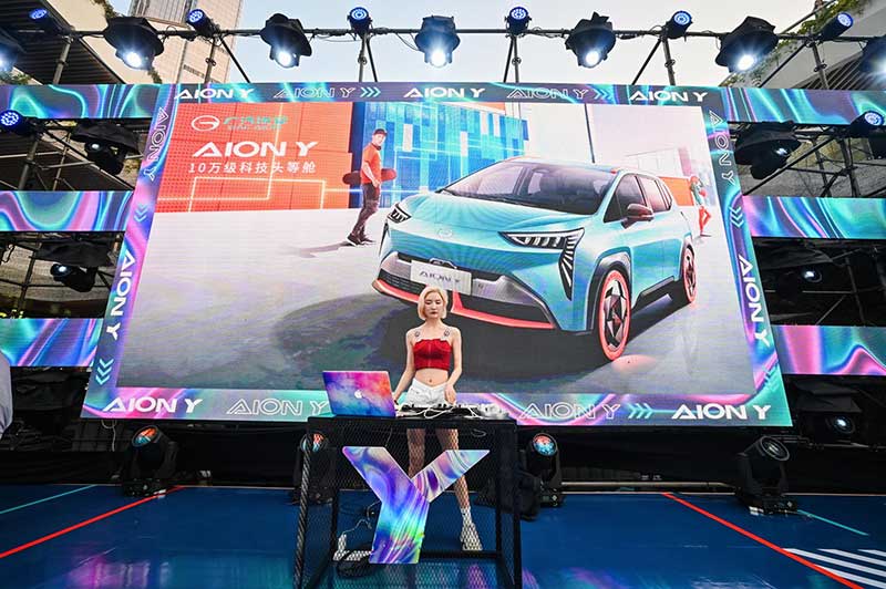 2021广汽埃安AION Y深圳上市发布会上集结各路埃安粉,变身Z世代种草机,超强体验年轻人的轰趴房车。