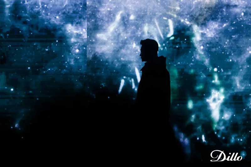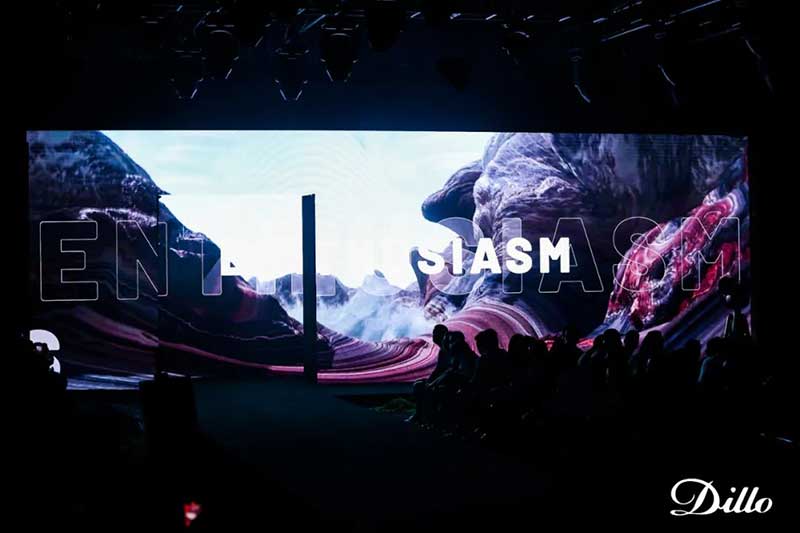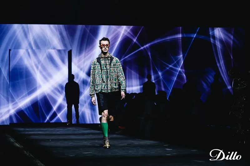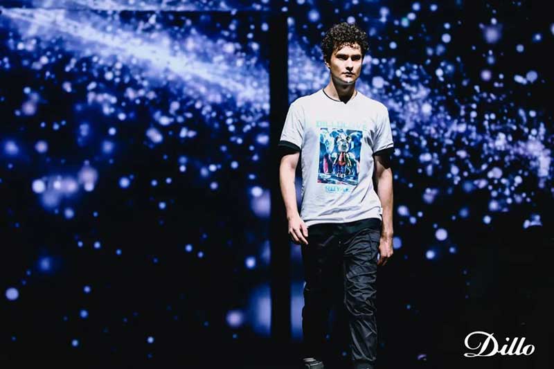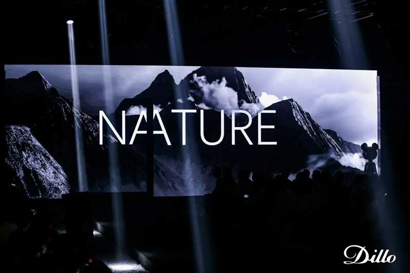 DILLO重新定义男士时尚,从传统的沉闷中解脱出来,遇见生机和奇幻,如同从一片宇宙洪荒而来,勇敢探索,一路新生。COSMOS星际熊向人们展开充满无限可能的世界,穿越空间、探索未知,这与DILLO在男装时尚领域的热情与探索相不谋而合,因此将本次活动的主题定位为「星际幻行」。本次活动开场秀由灯光配合屏幕进行,在宇宙洪荒间出现了生命的踪迹,蜜蜂和老虎在远处出现,植被突破废墟开始生长,沉闷中生出新的色彩交汇形成DILLO品牌logo。