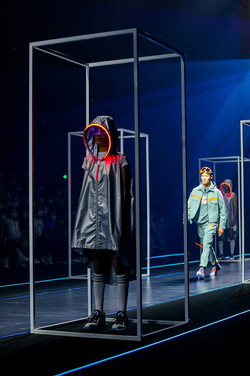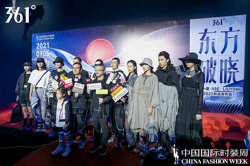 中国领先的体育用品品牌361°亮相中国国际时装周(2022SS),呈现了一场主题为“东方·破晓”的新品发布会。活动当天,发布会秀场利用光线、烟雾、几何形状、折射镜面以及大面积的水滴侵袭而来的画面制造了极具视觉冲击力的沉浸式展示场景。发布会以“地球往事”、“黑暗森林”和“死神永生”3大主题进行呈现,56套新品服装将斜襟、不对称设计和三星堆纹样等中国传统服饰元素与印花、激光雕刻金属标牌等新国潮元素进行融合,辅以未来科技感的秀场布置,充分展现了361°将东方美学与科技国风和谐相融的新品设计理念。