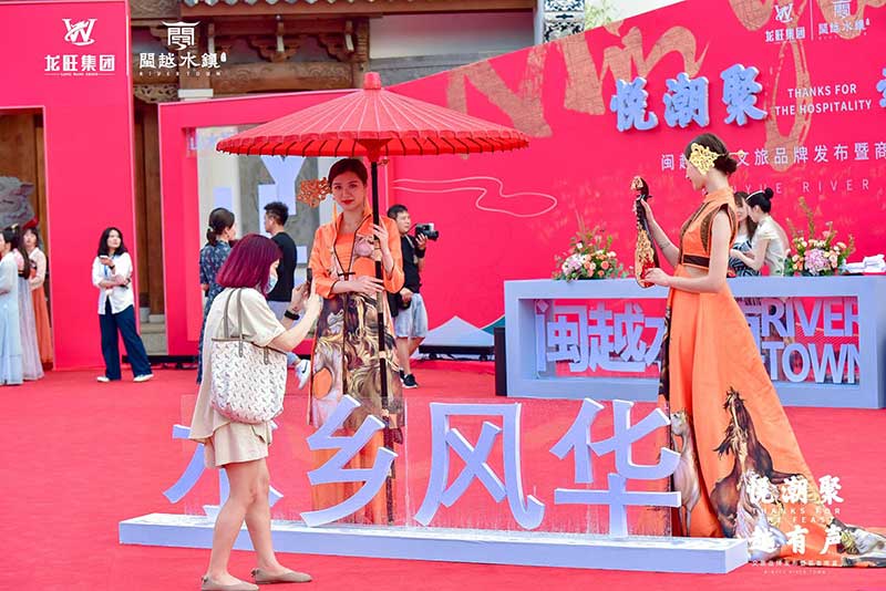 步入八闽广场,“阔岸潮生”的氛围元素,延续海丝精神与闽越文化的内核。一众来宾热情留影,挥笔签到为活动璀璨开篇。作为福建龙旺集团的首个大型文旅项目,闽越水镇历时9年匠心打造,以海丝及闽越文化为内核,注入时代感与科技感,为城市构筑前所未有的文旅目的地。为全圈层打造文化、艺术与休闲兼顾的文旅新主场。