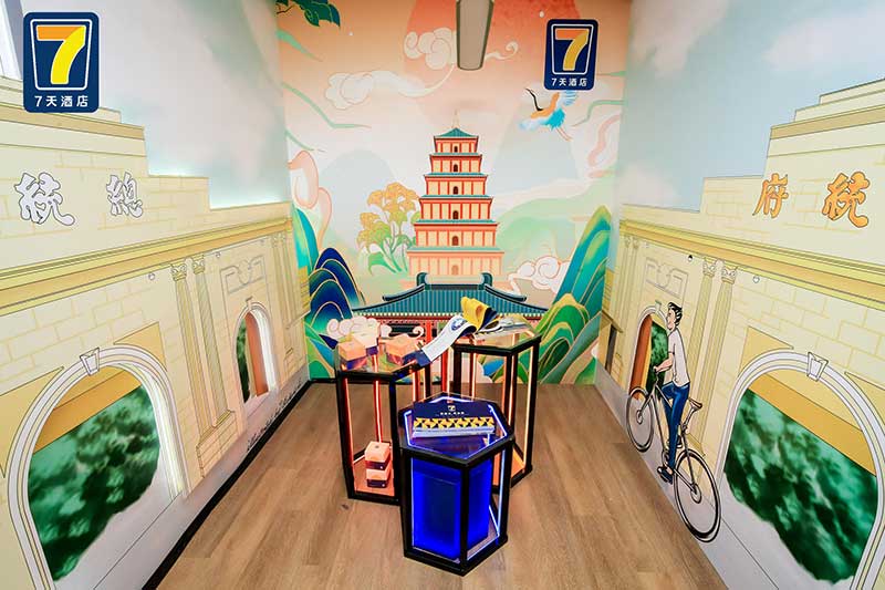 7天酒店3.0四城联动云开业暨全新IP发布仪式全面展示了7天酒店3.0发布一周年以来在各方面取得的成绩,并在上海主会场与各位嘉宾一同现场连通南京新街口上海路地铁站店、南京新街口常府街地铁站店、武汉黄鹤楼户部巷美食街店、成都玉林路省体育馆地铁站店4家酒店的开业现场,四城联动启动了盛大的云开业仪式。