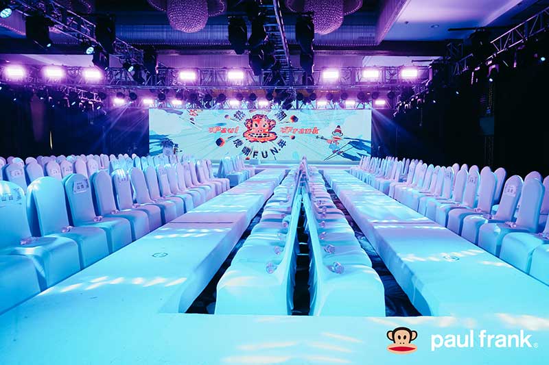 针对paul frank 品牌需求和新品特性,集思广益制定了“热雪燃潮·虎啸FUN年”的活动主题,重磅推出paul frank 2021“冬季潮流新品”和“虎年年装新品”,为现场大嘴猴全国代理商、经销商代表打造了一场将潮流与年味完美融合的潮流童装盛宴。