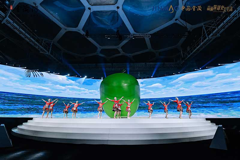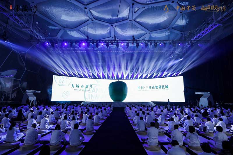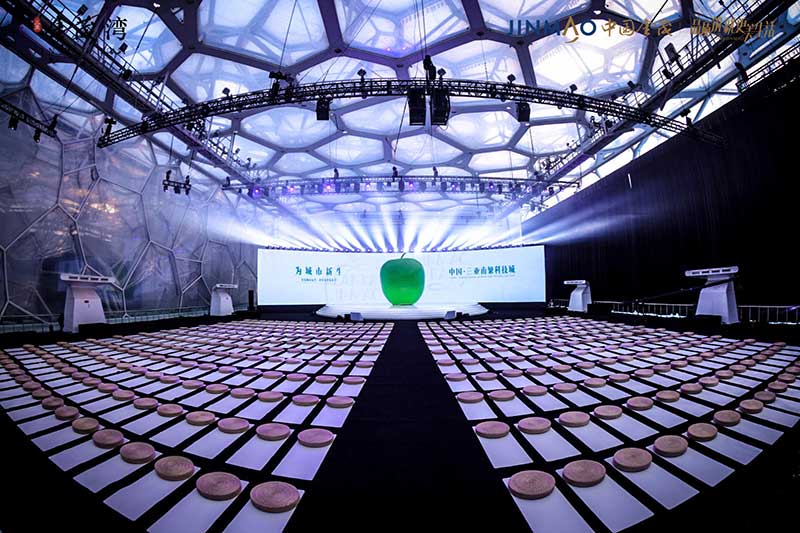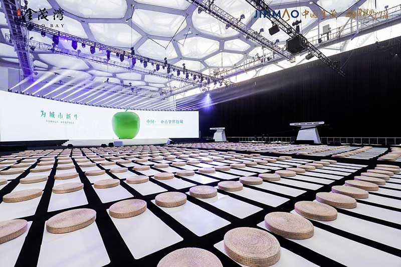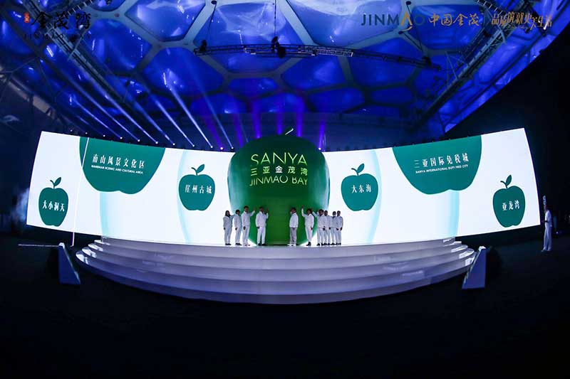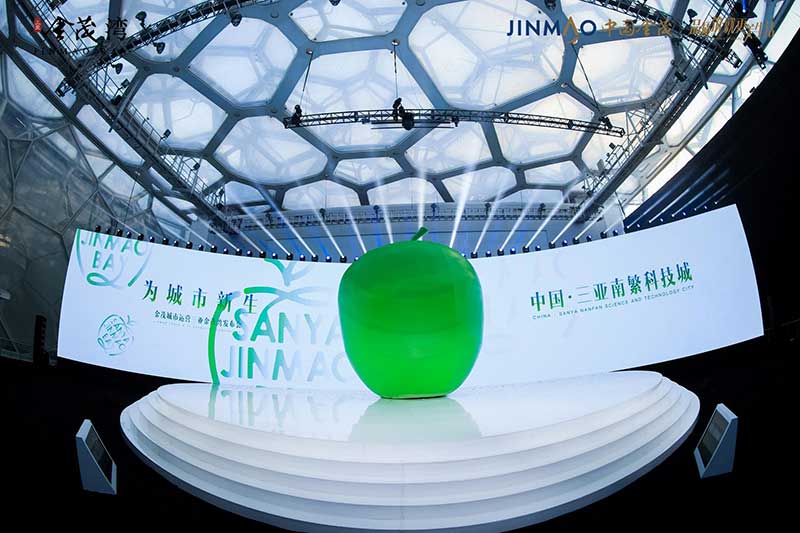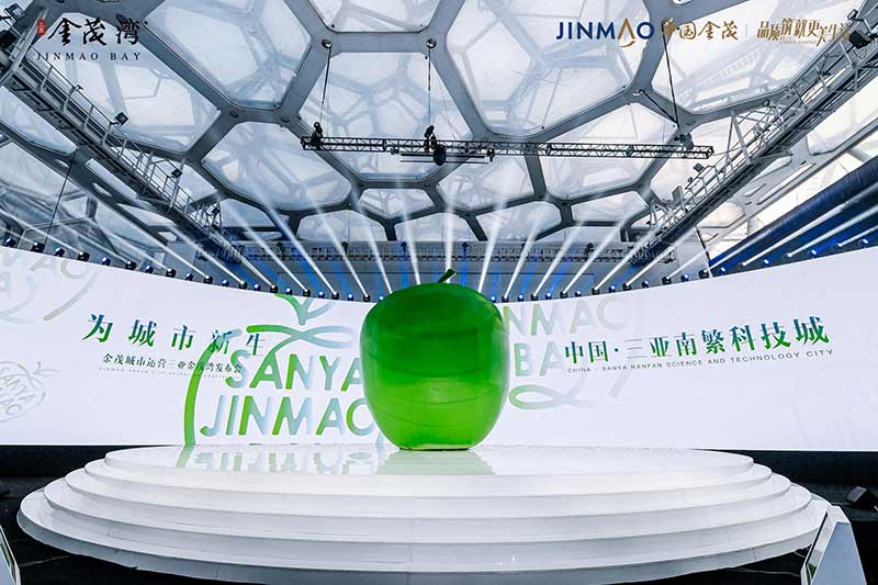 一颗高达6米的巨型青苹果“空降”北京水立方,为寒冷的北京带来一股来自南方的温暖生命力。以“为城市新生”为主题,由中国金茂举办的金茂城市运营三亚金茂湾发布会,就在这里进行。活动将发布会外场打造机场形式,来宾的邀请函为机票,进入活动现场,跟随主办方乘坐飞机从北京出发“前往”三亚,入场后统一换装,更为休闲轻便的服饰,让来宾也更为放松。而舞台的形式,一个大苹果的IP造型,超级视觉符号的建立,将三亚的绿色健康生活诠释的淋漓尽致。