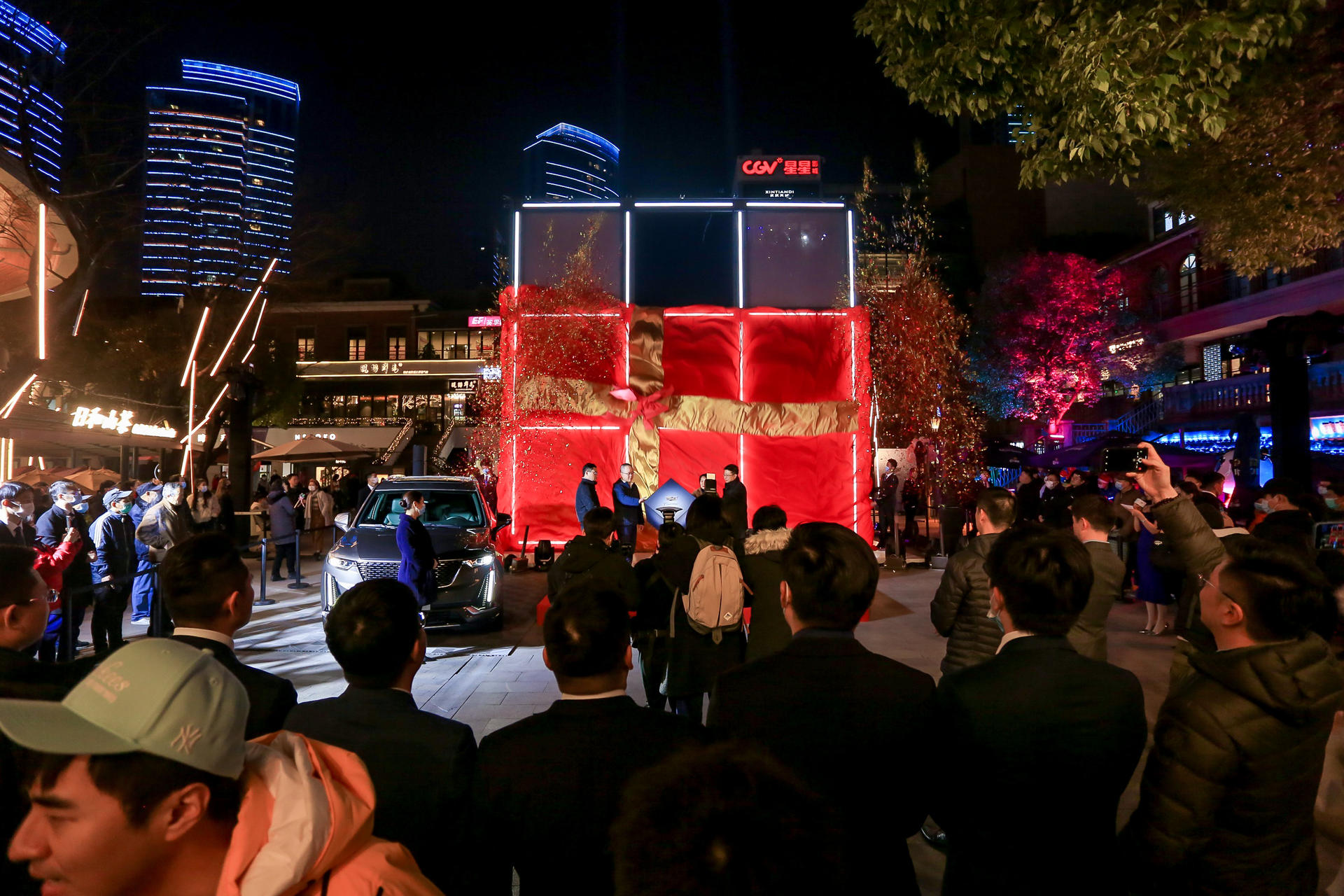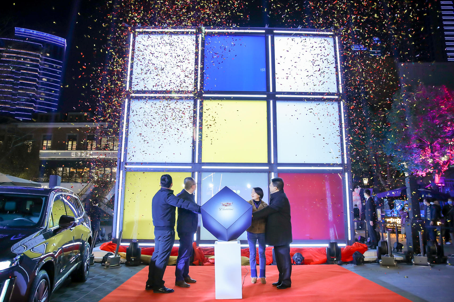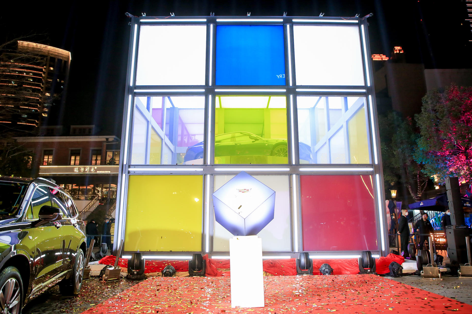 一个被蝴蝶结包裹住的神秘巨型“空投箱”重磅来袭,降落在新天地喷泉广场。魔方立方体造型,外观极具未来质感,同时拥有夺目的视觉冲击力。等到夜幕降临,才能发现其中的光影奥秘——在炫彩光影的加持下装置内的一切变得可视,光影闪烁,点亮梦幻夜色。打卡潮酷趣味空间,沉浸多重感官盛宴,由凯迪拉克搭建的神秘艺术装置惊喜开箱,在现场可以和年度豪华运动轿车凯迪拉克CT5近距离互动。