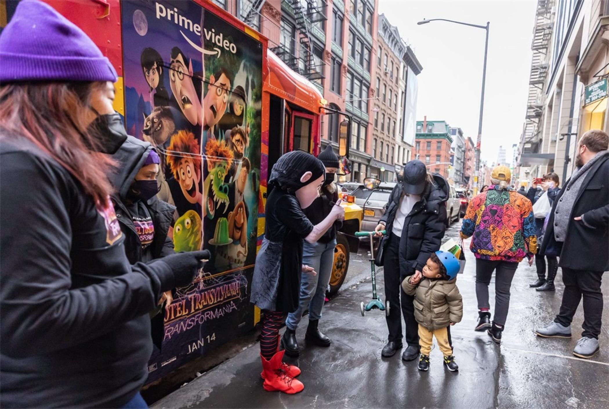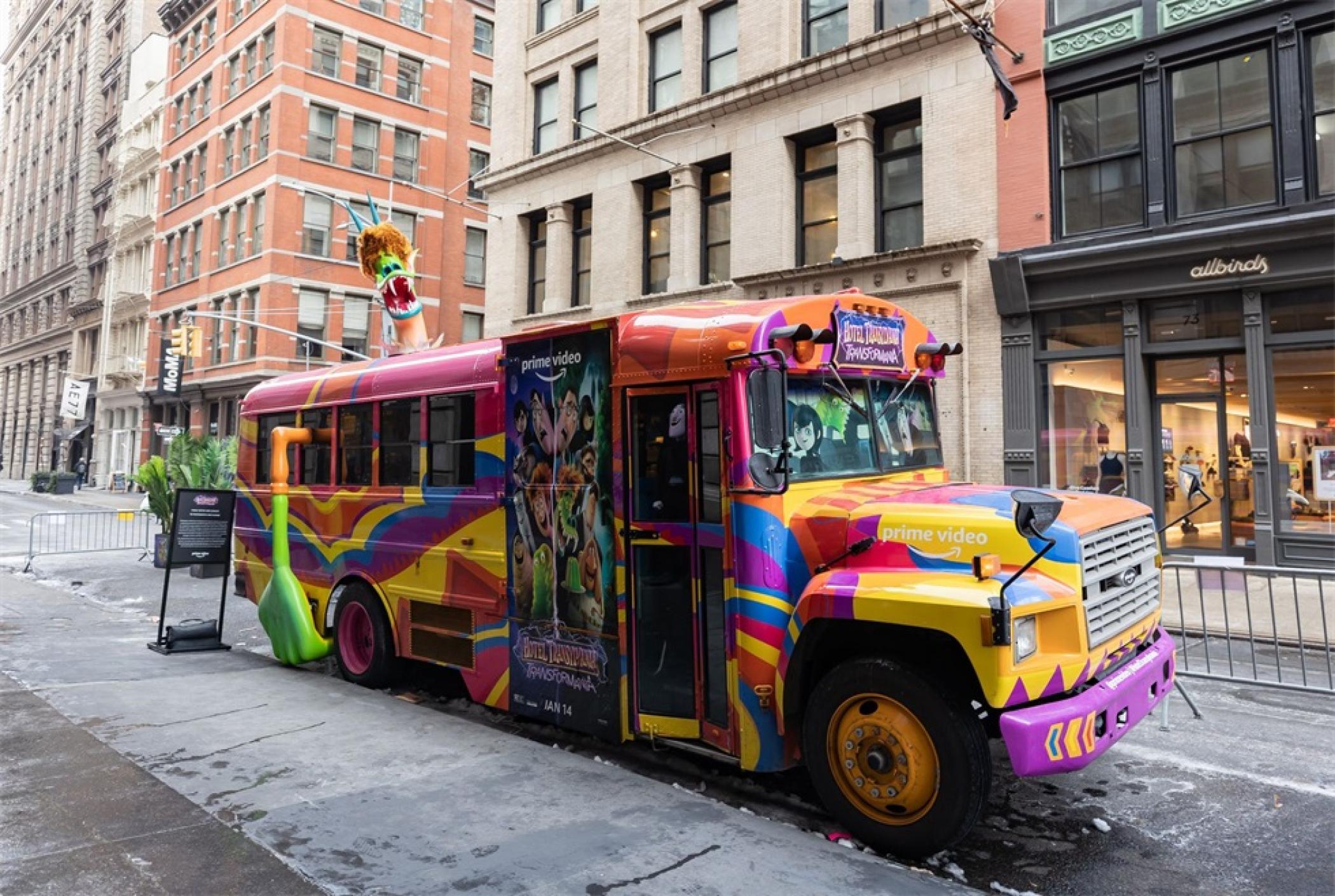 亚马逊Prime Video策划了《精灵旅社:变形狂魔》巴士巡回之旅,在美国各地推广其最新的电影,利用巡回活动来进行品牌激活,让人们对《精灵旅社》系列电影的最新内容感到兴奋,把多辆校车改成了在新电影中看到的那样,变成一辆定制的车轮上的电影体验。