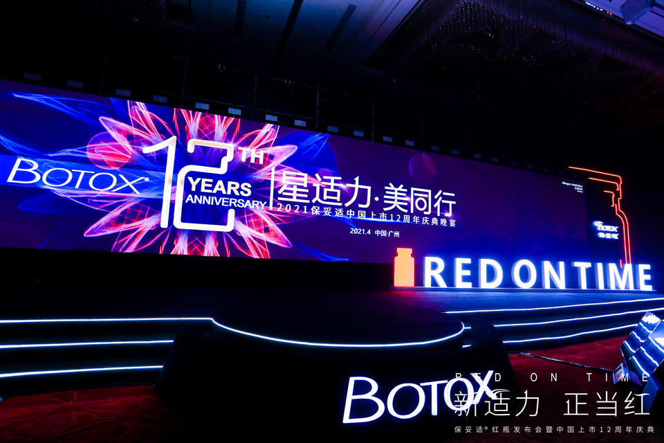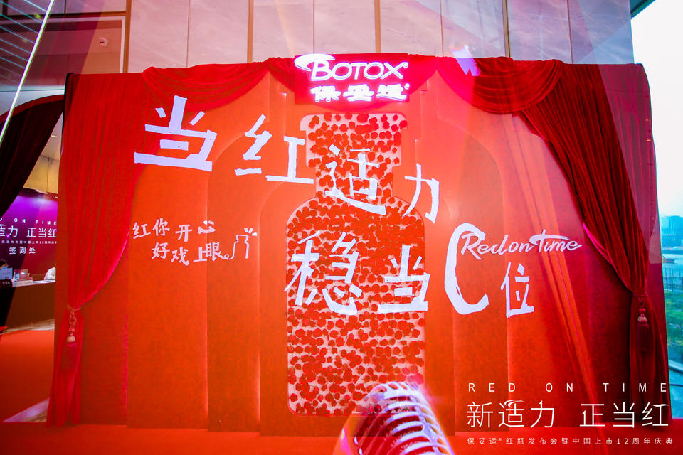 “RED ON TIME–新适力·正当红”保妥适红瓶发布会暨中国上市12周年庆典在广州隆重举行。全国200多家医美机构、300多位客户受邀出席本次会议。随着时代的快速发展,医美科技不断升级换代,爱美人士对于美学的要求越来越高,越来越精细,越来越个性化。此次,艾尔建全新推出新品小红瓶,打破了全年美学除皱战役的第一阶段。小红瓶除皱抗衰方案优化升级,鱼尾纹+眉间纹的联合治疗,平衡眶周肌肉的力度,使得整体皱纹减少,效果更自然,维持时间更长,更好地保障品质与效果,能够更好地守护爱美人士眉眼年轻,让好戏睛彩上眼。
