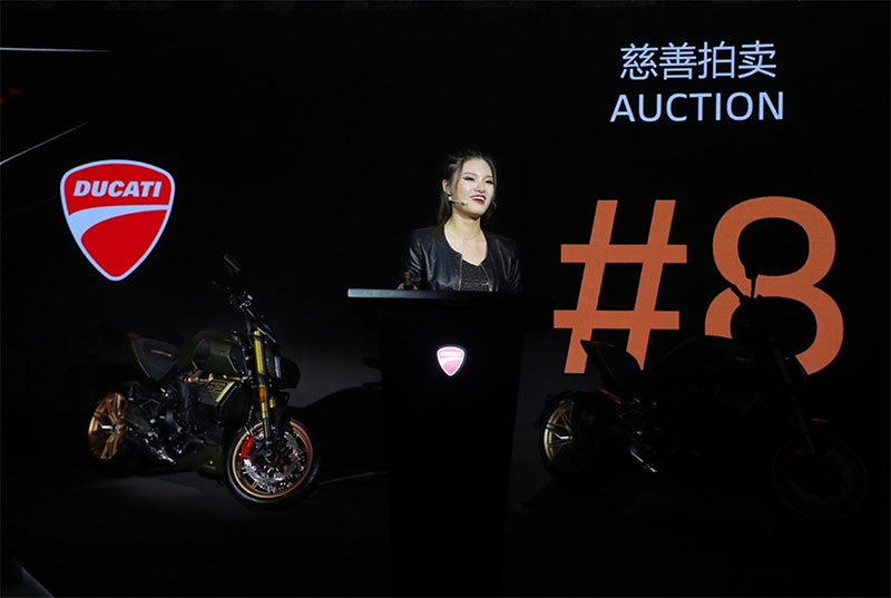杜卡迪和兰博基尼为迪艾维尔1260在中国的上市举办了一场独家慈善拍卖活动,现场拍卖了3辆车,并将资金捐赠给儿童福利。