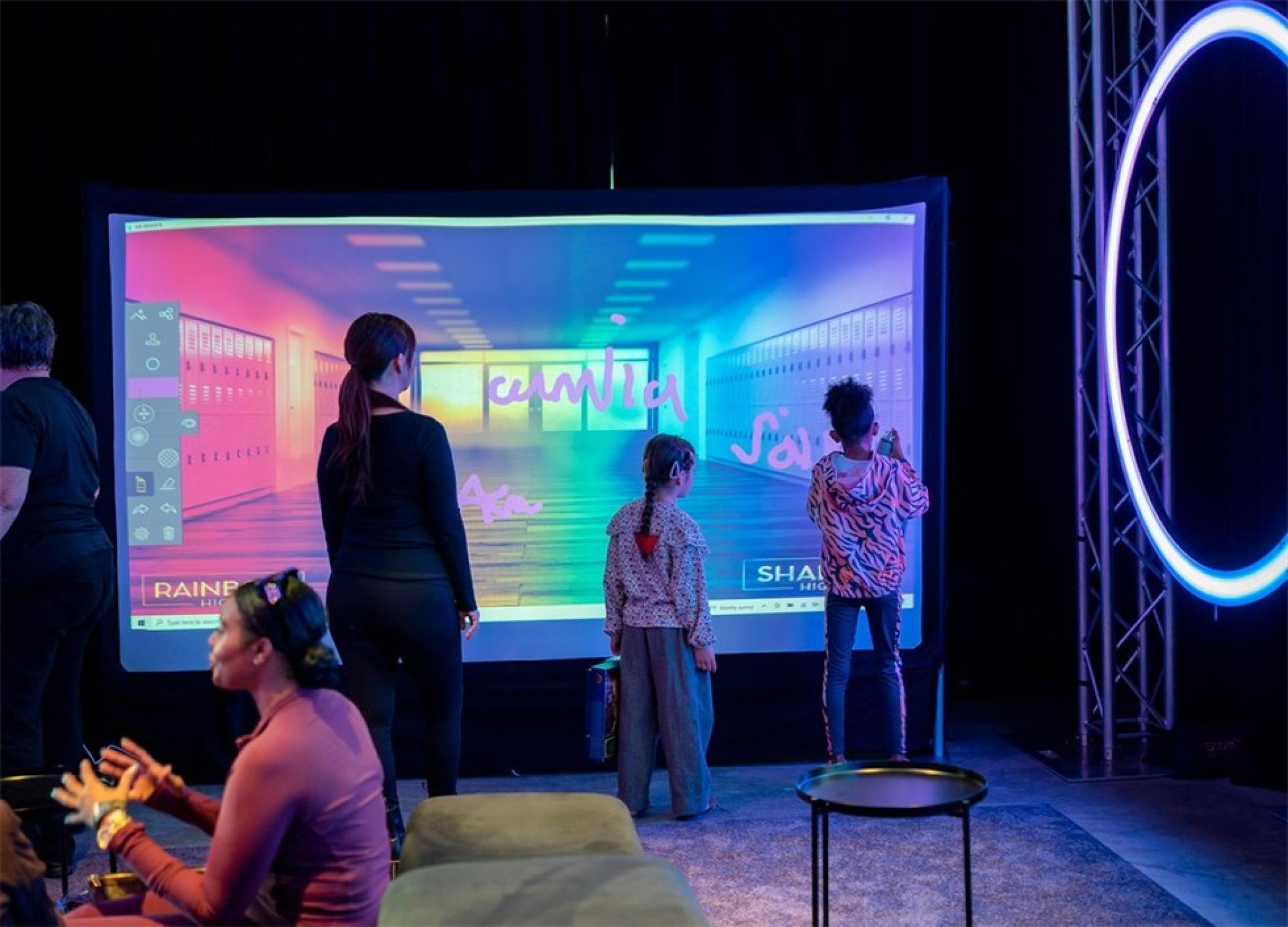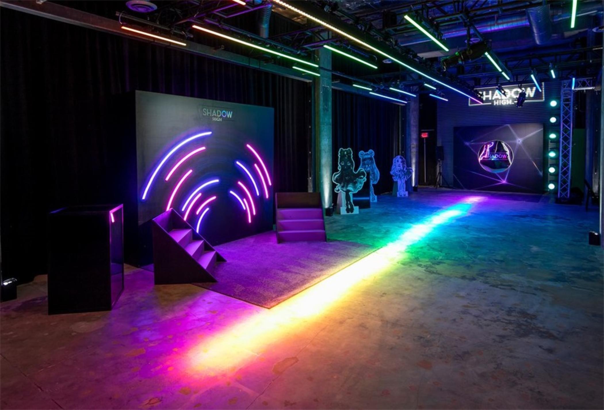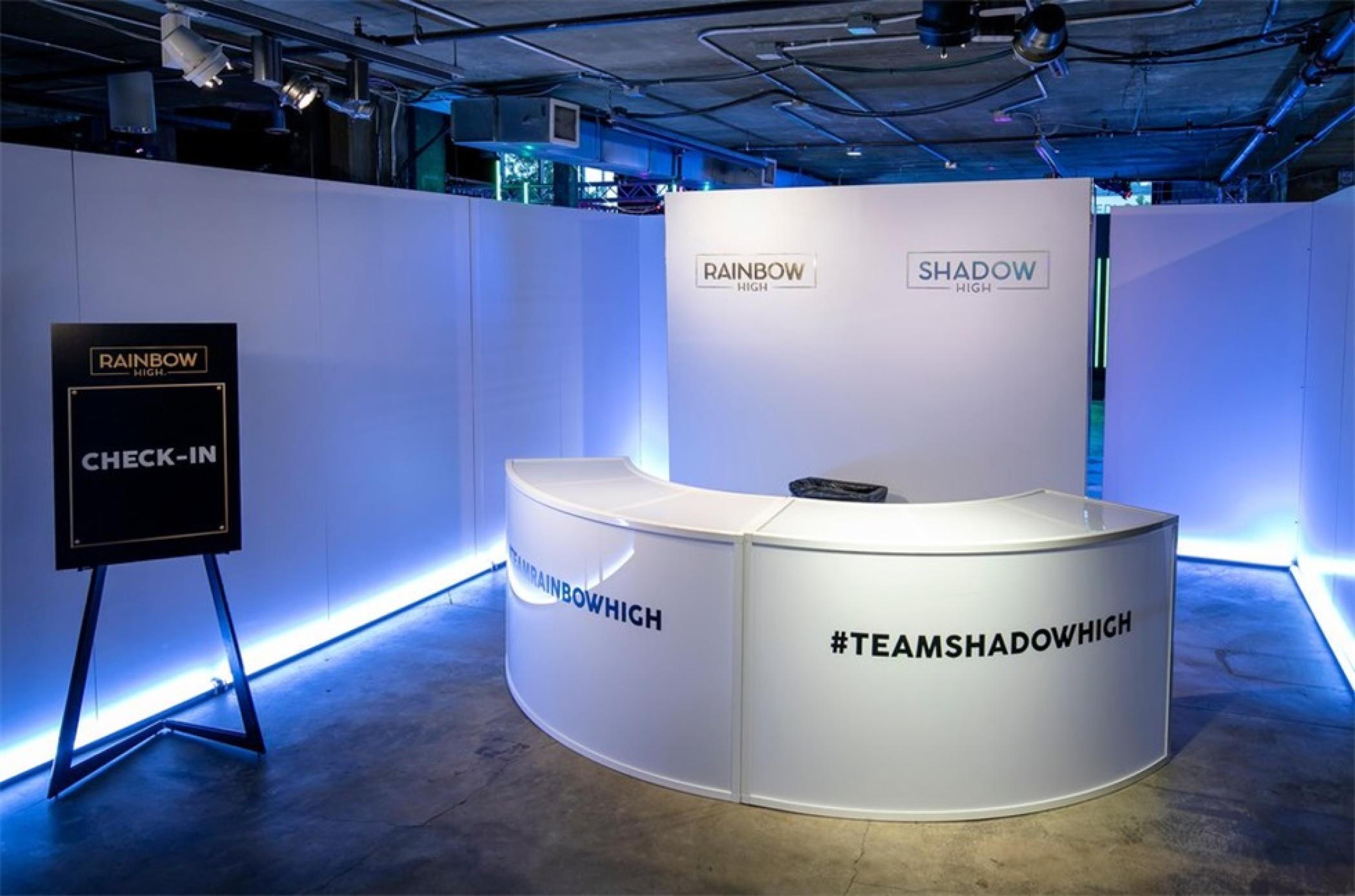玩具公司MGA要求举办一个快闪店活动来庆祝其彩色时尚玩偶系列彩虹高中之影子高中的发布。活动在一个占地2700多平方米的空间里举行,活动的灵感来自彩虹高中和影子高中的粉丝群之间有趣的竞争,结合了玩具系列的动画元素。活动的现场被分为三个部分: 彩虹高中、影子高中和一个现场零售商店。