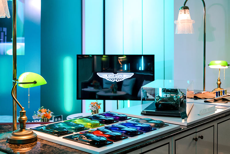 整体空间以阿斯顿·马丁标志性的绿色为主色调,入口处展示了阿斯顿·马丁沙特阿美F1车队的F1赛车模型与倍耐力的轮胎,延续了整个F1中国大奖赛的速度与激情。倍耐力为阿斯顿·马丁赛车量身定制的P Zero源于赛车运动,是高性能领域的标杆产品,轮胎胎侧独特的A6A、A6B原配标识,彰显轮胎专为赛车量身定制的不凡身份。