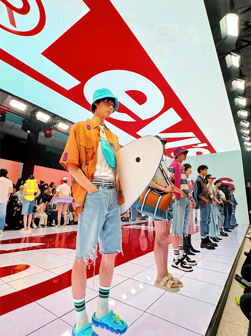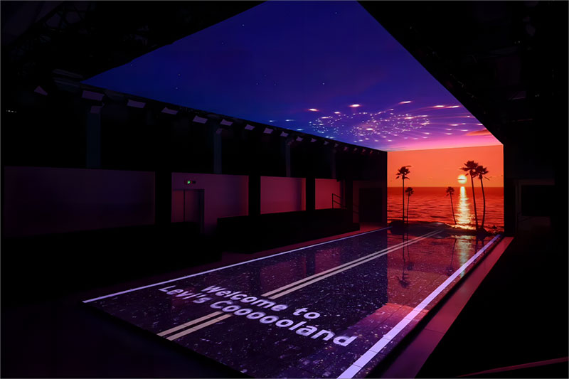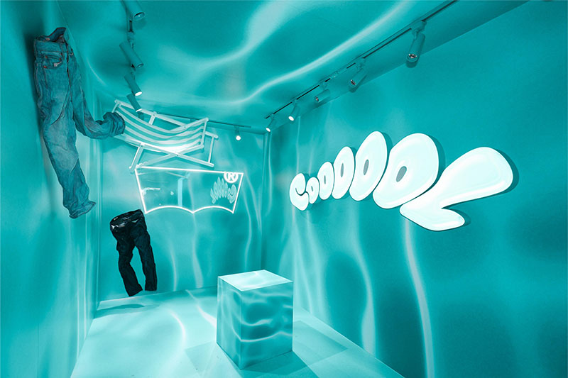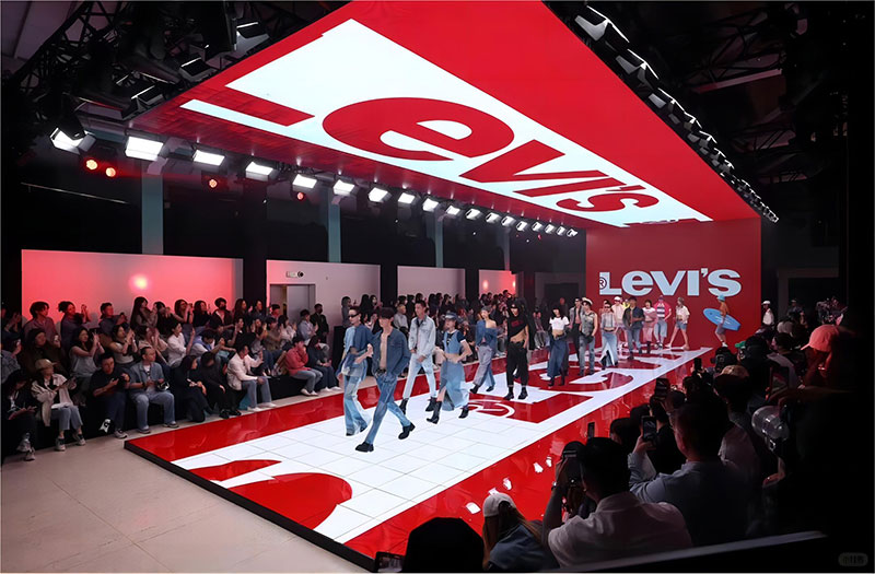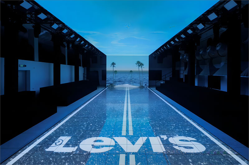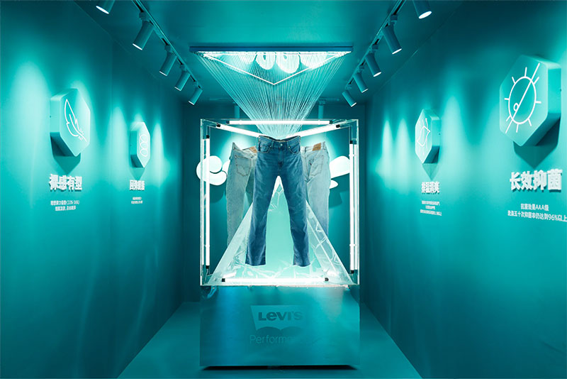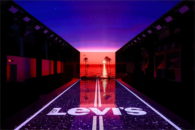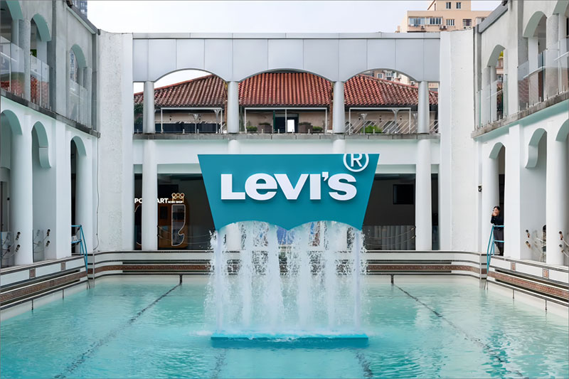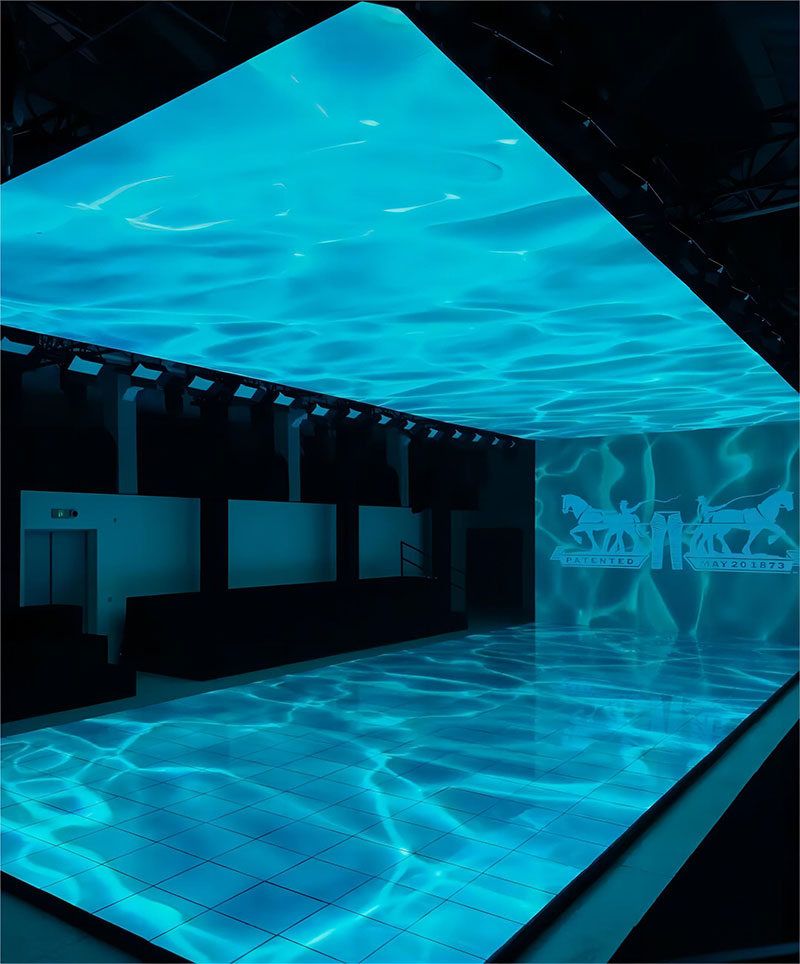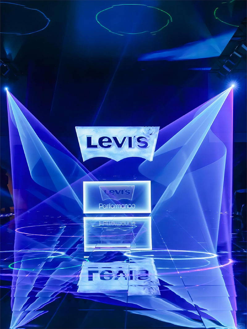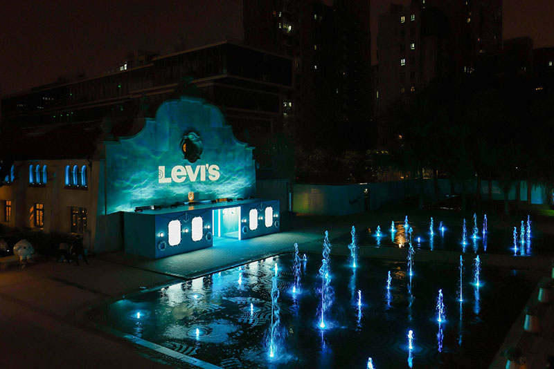 Levi’s Performance冰酷系列新品发布会上,酷冷海景打卡点、水影MAPPING、泳池Levi’s LOGO主题喷泉从不同的感官角度强化品牌、色彩、清凉之间的立体结构关系,可谓高杆!