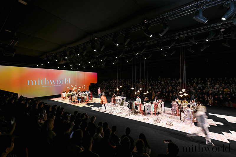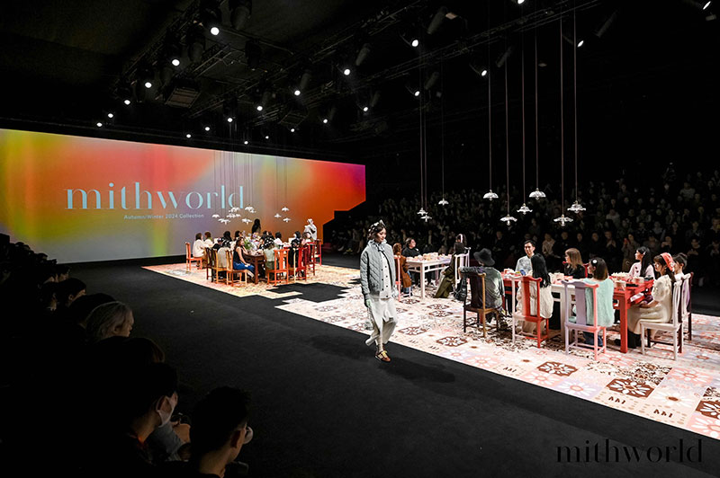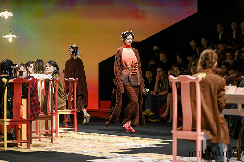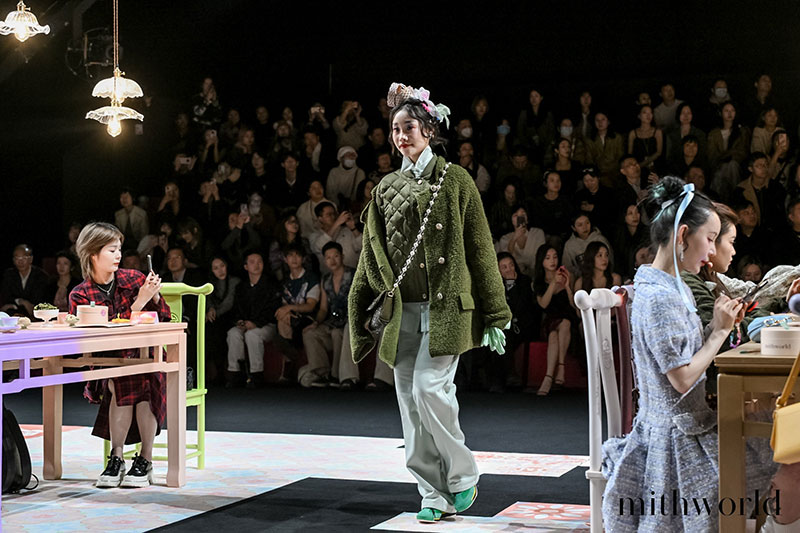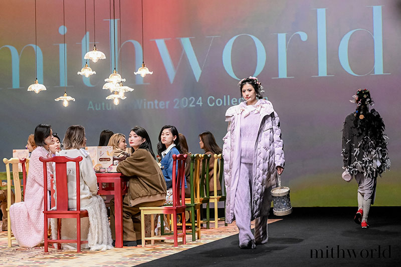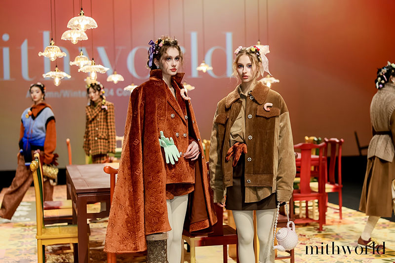 mithworld作为本届上海时装周闭大幕秀,以「点心·DIM SUM」为2024秋冬系列主题灵感,呈上人间烟火的秋冬写意,为本次时装周落下一个充满趣味的完美句点。本次秋冬系列,创意设计总监Demon Zhang撷灵感于丰富渊厚的中式点心文化,将精巧点心造型融入时装剪裁。食物的醇厚质地与暖感色泽于时装设计中杂糅掺混,捕捉生活况味中余韵隽美的瞬间。