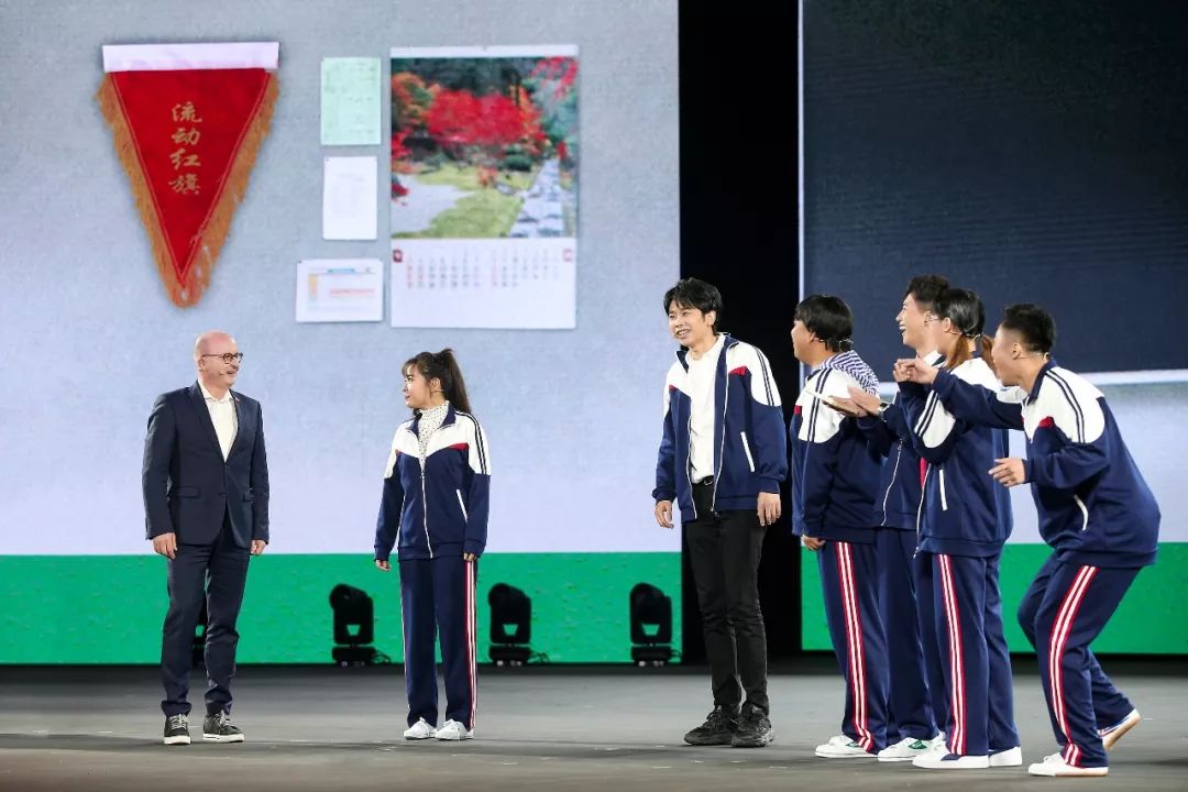 “全校师生请注意,全世界请注意,今晚六点半,召开全校师生大会!”一场精心策划的千人情景剧开始了。主创团队各个捏着把汗,校园歌曲回忆杀,唱出了青春斑驳的岁月和年少的梦想。上课铃声响起,开心麻花团队开始了他们的表演,”报告老师,咱们班应到6人,实到1006人!”,来了这么多“旁听生”啊。班主任汪涵老师眉头紧锁,眼睛瞪得更大了。下方高能预警,奔驰老板们一改往日严肃风,沉浸在“教师”的角色中,虽说都是第一次,但非常入戏,演的倍儿好。