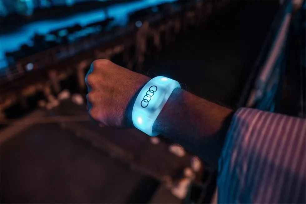 一队由英特尔公司(Intel)制造的无人机表演了一场精心编排的“芭蕾舞”,当无人机组成奥迪的光环时,夜空中令人眩晕的视觉效果让活动现场的客人们的情绪达到了高潮。定制设计的等离子球道具提供了“瓶中闪电”的效果,增强了CEO开场演讲的现场效果。e-tron SUV覆盖了荧光网格线图形,以表达其动态形状与LED墙的内容一致。在声、光和移动的LED墙的配合下,戏剧性地将网格线车辆“转化”,使其成为了一辆展示车辆。发光的LED腕带与音乐和环境同步跳动。激动人心的发布会后派对邀请了著名的DJ, Diplo。