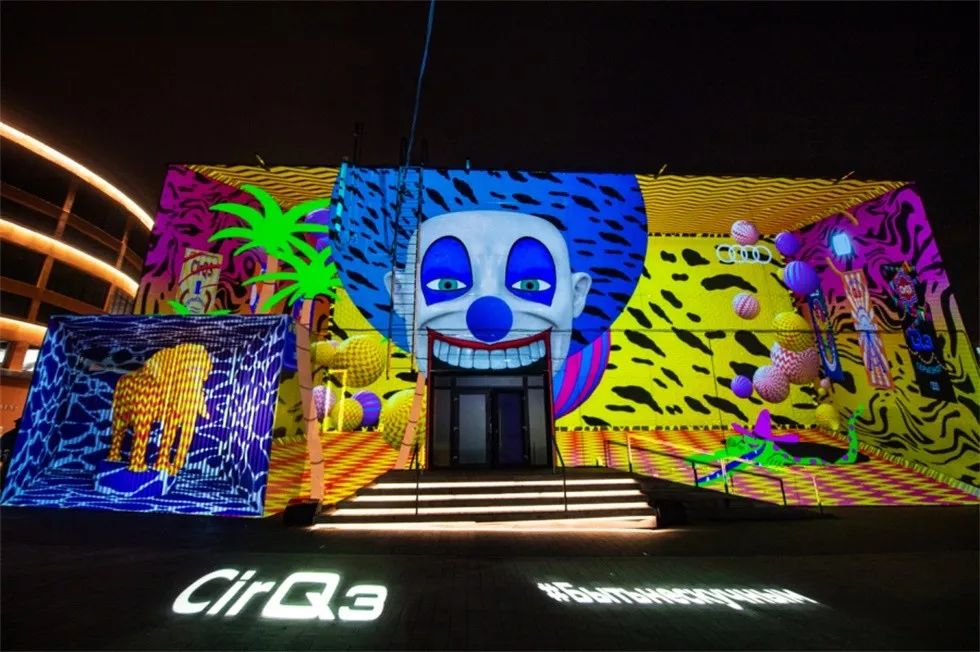 在接近活动现场时,客人们会遇到催眠图案和投射到会场正面的古怪马戏团的角色,包括一个巨大的小丑头,召唤他们进去。在衣帽存放区,客人们用外套换取活动面具,戴上面具的他们将迅速地融入CirQ3的体验中。