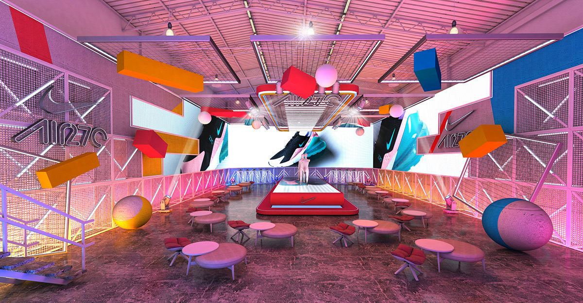 nike耐克一直将激励全世界的每一位运动员并为其献上最好的产品视为光荣的任务。为此,此次nike发布会策划动感十足,工业风的主体下,以粉色为主色调,辅之多彩色调作为点缀,并将舞台设计成跑步机的形式,更彰显了其运动品牌的属性。