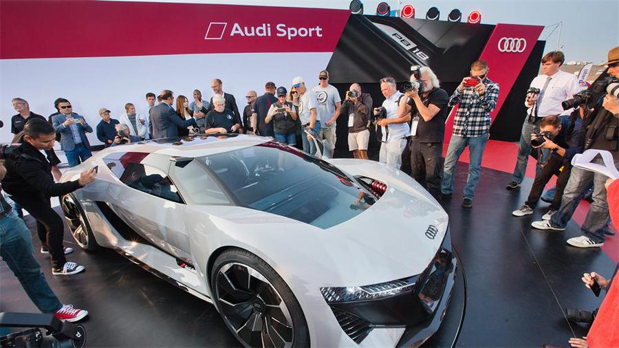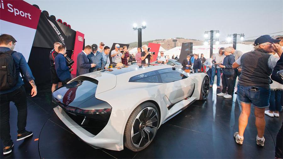 奥迪品牌在圆石滩汽车周期间在拉古纳塞卡的WeatherTech赛道推出了奥迪全新的电动概念的pb18 e-tron®跑车。