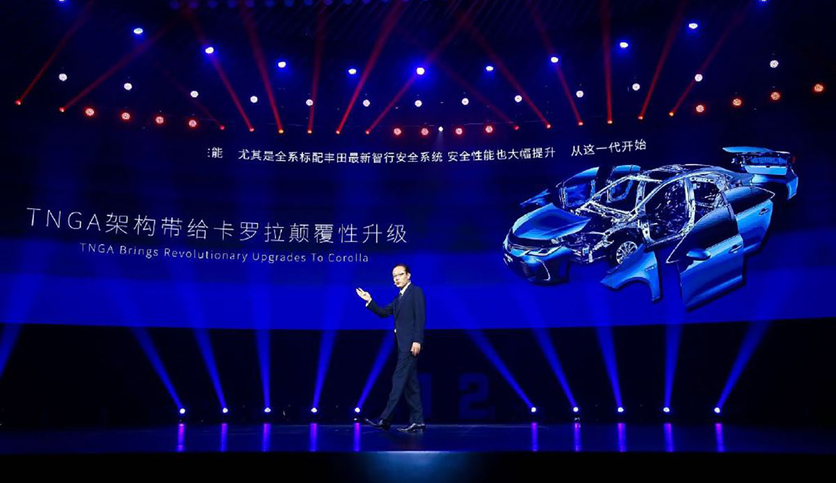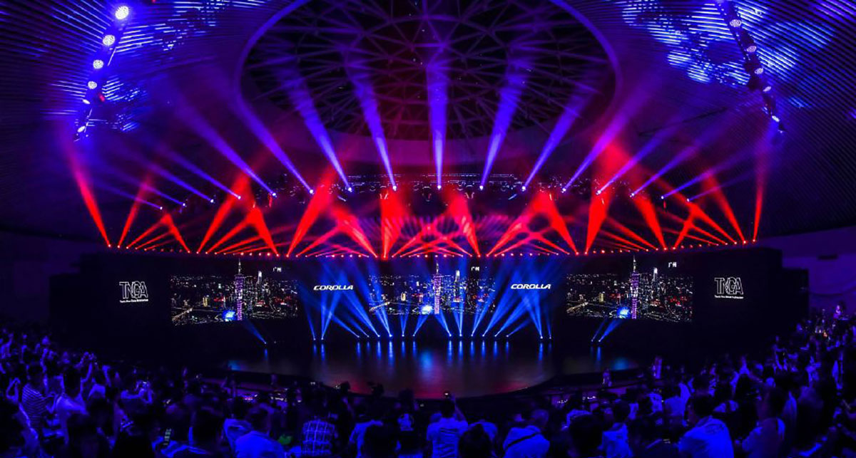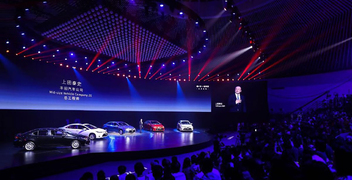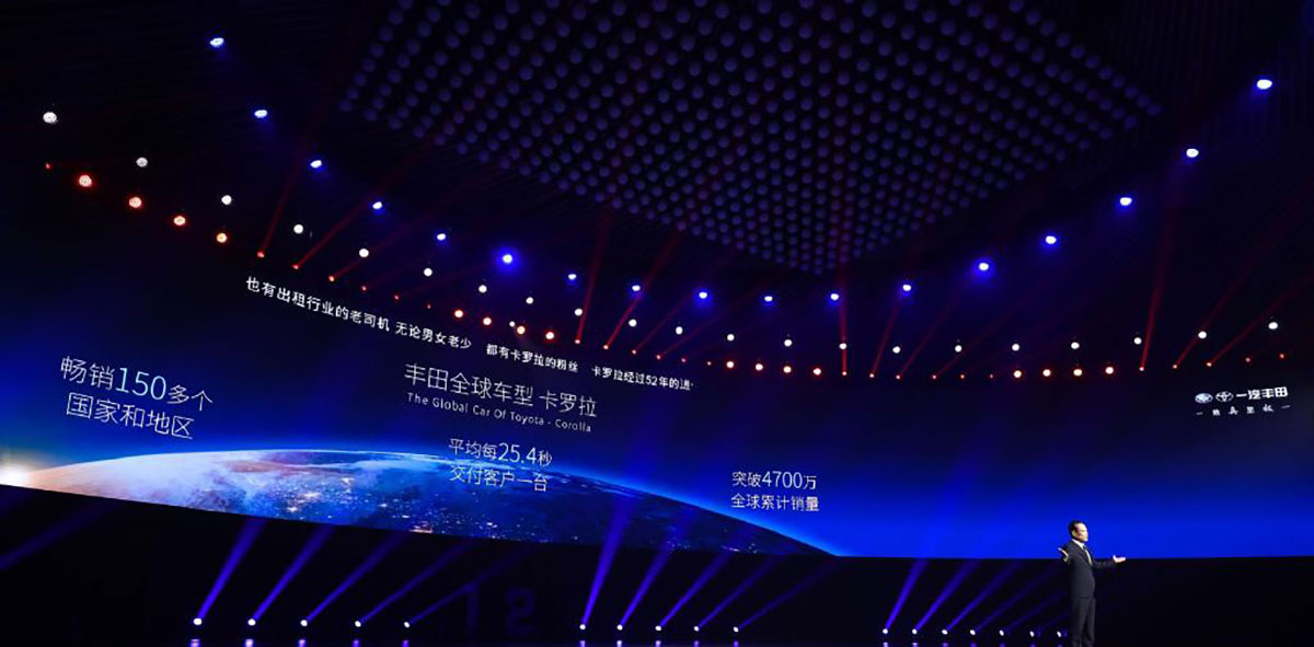 发布会主会场的舞台看似简洁其实又具特色。圆弧形宽大屏幕,配上数控升降球,通过编程做出不同的视觉效果,给整个发布会增加了许多亮点及视觉震撼力,极致音浪,沐歌盛放,感受进化的乐韵,期待不同的精彩。发布会现场金志文的一曲“MY WAY”呼应发布会主题的同时,更是把发布会推向了另一个高潮。最后在灯光交相辉映下,在此起彼伏的惊呼声中,第12代全新COROLLA卡罗拉突破想象,澎湃来袭,缓缓地驶向舞台,完成了惊艳的亮相。