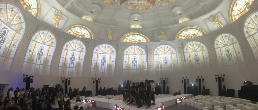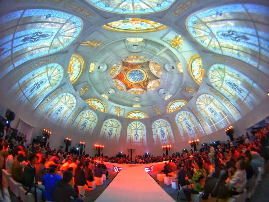 活动舞台被设置在场地的正中央,为领导演讲互动区域,同时呈三叉戟形状布置3条T台,插入嘉宾坐席,显得既融洽又活泼。“环球之星”的场景模拟功能,灵活切换全球各地著名穹顶风景,带给大家空间转移的美好感受。