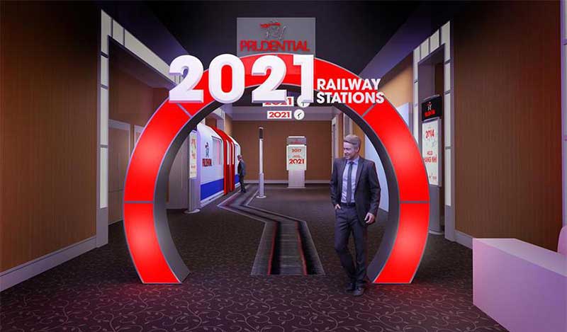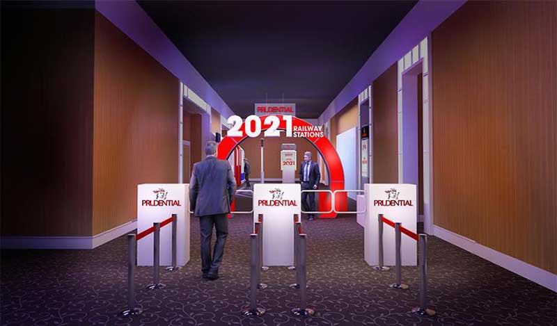 此次英国保诚集团的年会和发布会一起举办了,该如何将两者联系起来,保诚集团突破常规,以“奔向2021”为主题,活动现场更是以火车站、月台等作为主体视角,一进入主会场处就被“车厢门”装饰吸引了,一起去看看现场的策划设计吧。