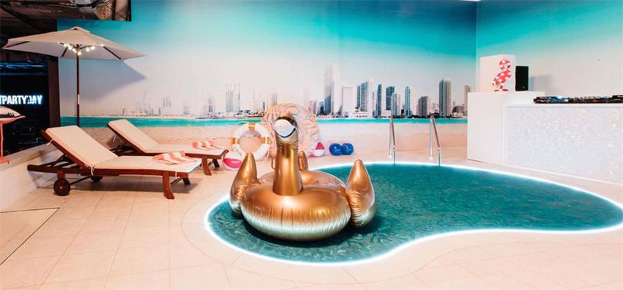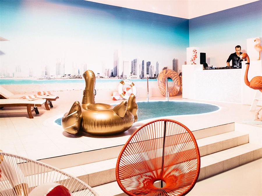 从无限的镜子室到迈阿密泳池的场景,空间被转变为五个不同的沉浸式世界,令人眼花缭乱。