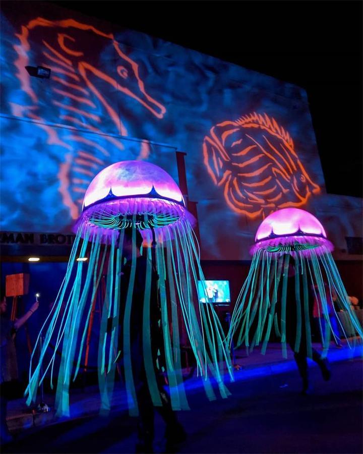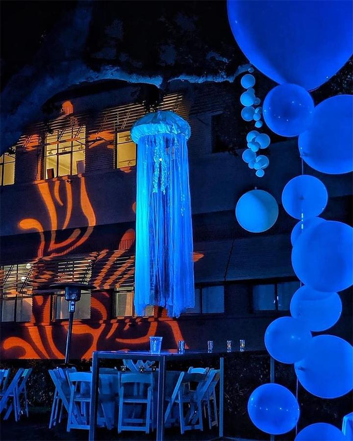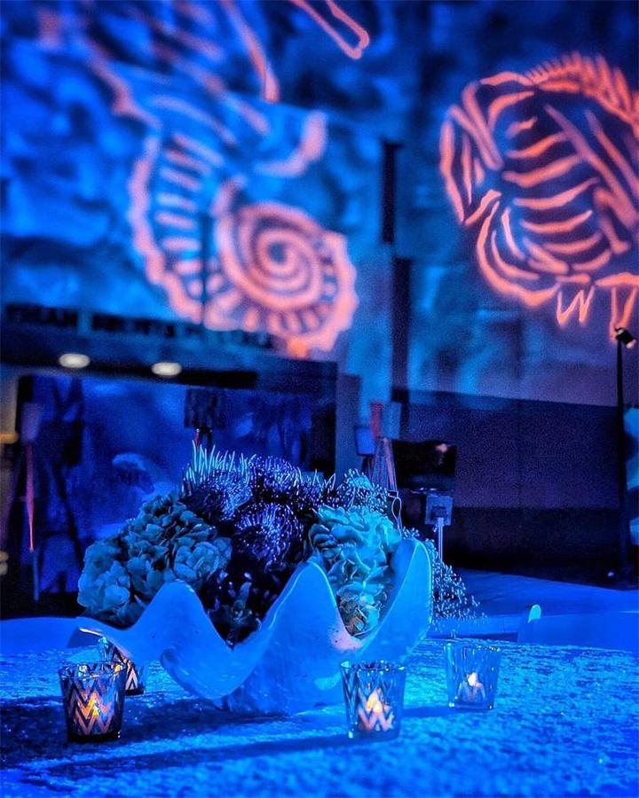 海底世界的主题活动设计应该是怎样的?此次的《小美人鱼》首映式主题活动的现场设计营造了一个海底世界的氛围,各种水母造型的装置,还有珊瑚、贝壳、海星、海螺、海马等海底动物通过灯光的形式呈现在活动现场,参会嘉宾仿佛置身于海底世界,和小美人鱼一起在海底世界里探险,甚至还开起了派对。