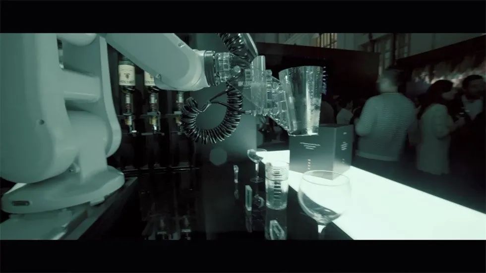 创新——两个机器人“调酒师”为客人们提供与品牌名称和颜色相同的鸡尾酒。