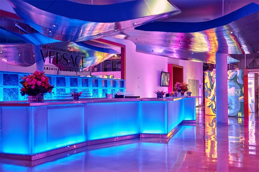 为了制造轰动和建立对剧集的预期,首先在洛杉矶和迈阿密举办了VIP/影响者活动。我们的设计、现场的布景元素和灯光反映了剧集的色彩和品牌的审美。墨菲说:“范思哲的生活就像一出歌剧,充满了激情、美丽和无限的创造力。”这就是活动体验策划背后的灵感。因此,我们在每个活动现场都安排了一位女高音歌唱家,演唱范思哲最喜爱的咏叹调《阿尔特的面孔》,为发布会带来一场令人惊喜的演出,然后再进行看片会。