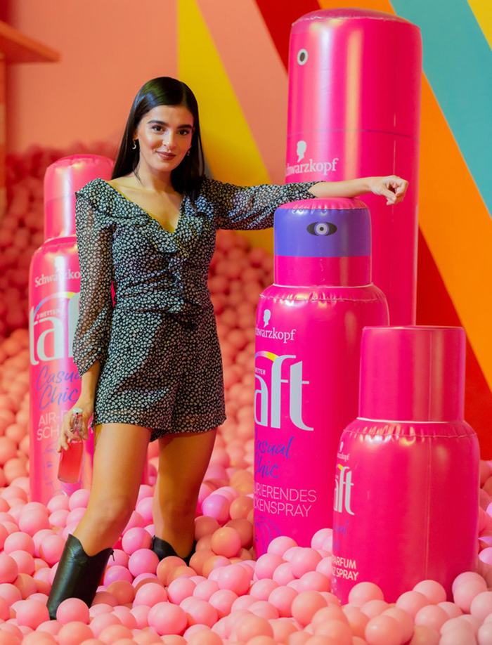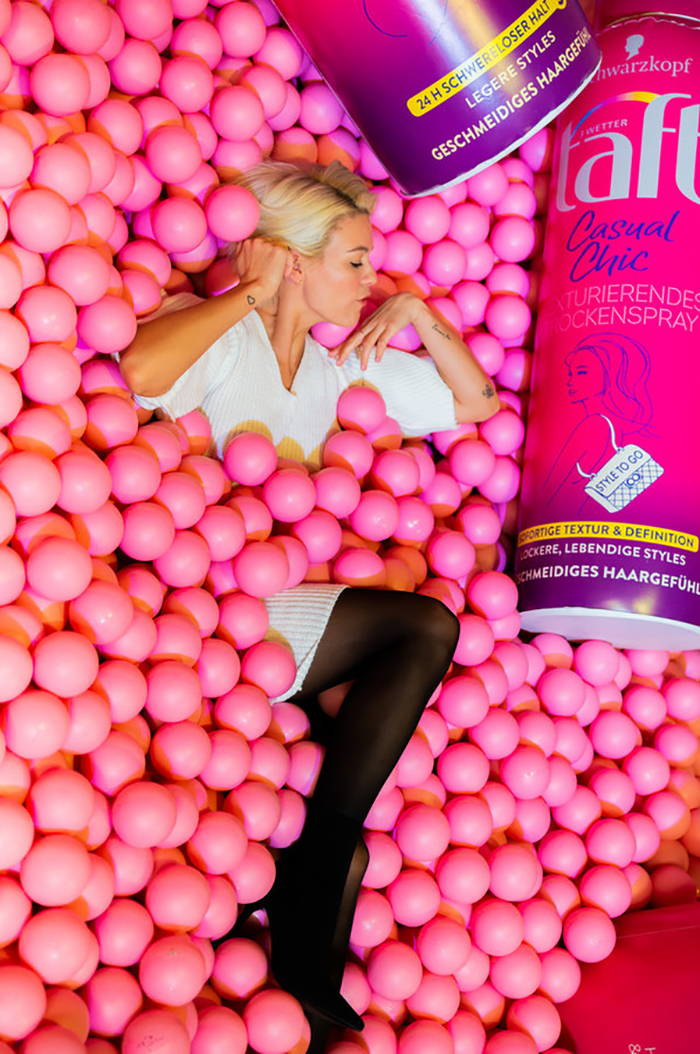 100位来自美容行业有影响力的人、博客作者和记者受邀参加了施华蔻保湿定型啫喱品牌粉红塔夫特的发布会。发布会活动在科隆的超级糖果博物馆举行,受邀请的客人们在活动现场与超大的产品道具进行大量的社交媒体自拍并上传,确保了活动现场信息对社交媒体的大范围覆盖。这样的活动比较像一个内容营销活动,邀请产品所属行业内有影响力的社交媒体网红参加现场活动,活动现场设计大量有吸引力的自拍道具,帮助网红们制作社交媒体内容(照片,短视频,直播等等内容),然后上传到各自的社交媒体平台,吸引各自粉丝的关注与转发。