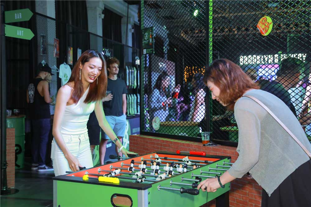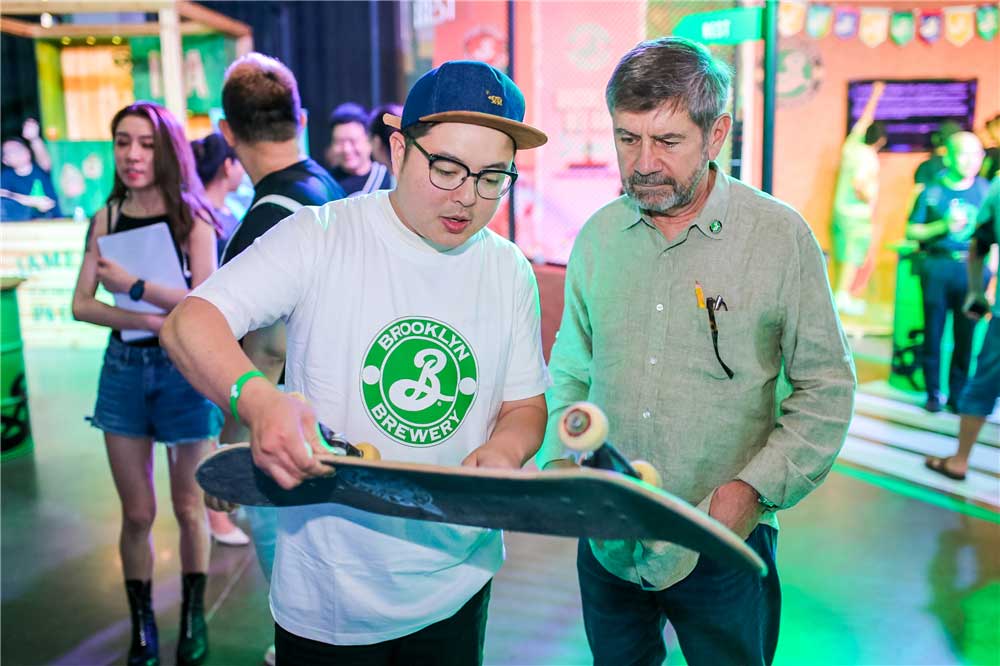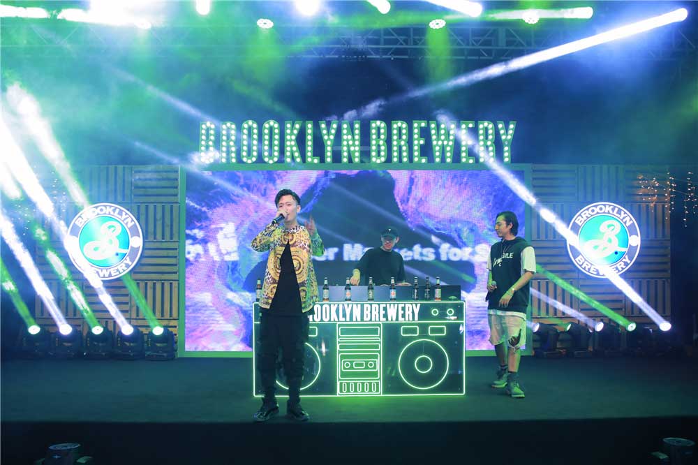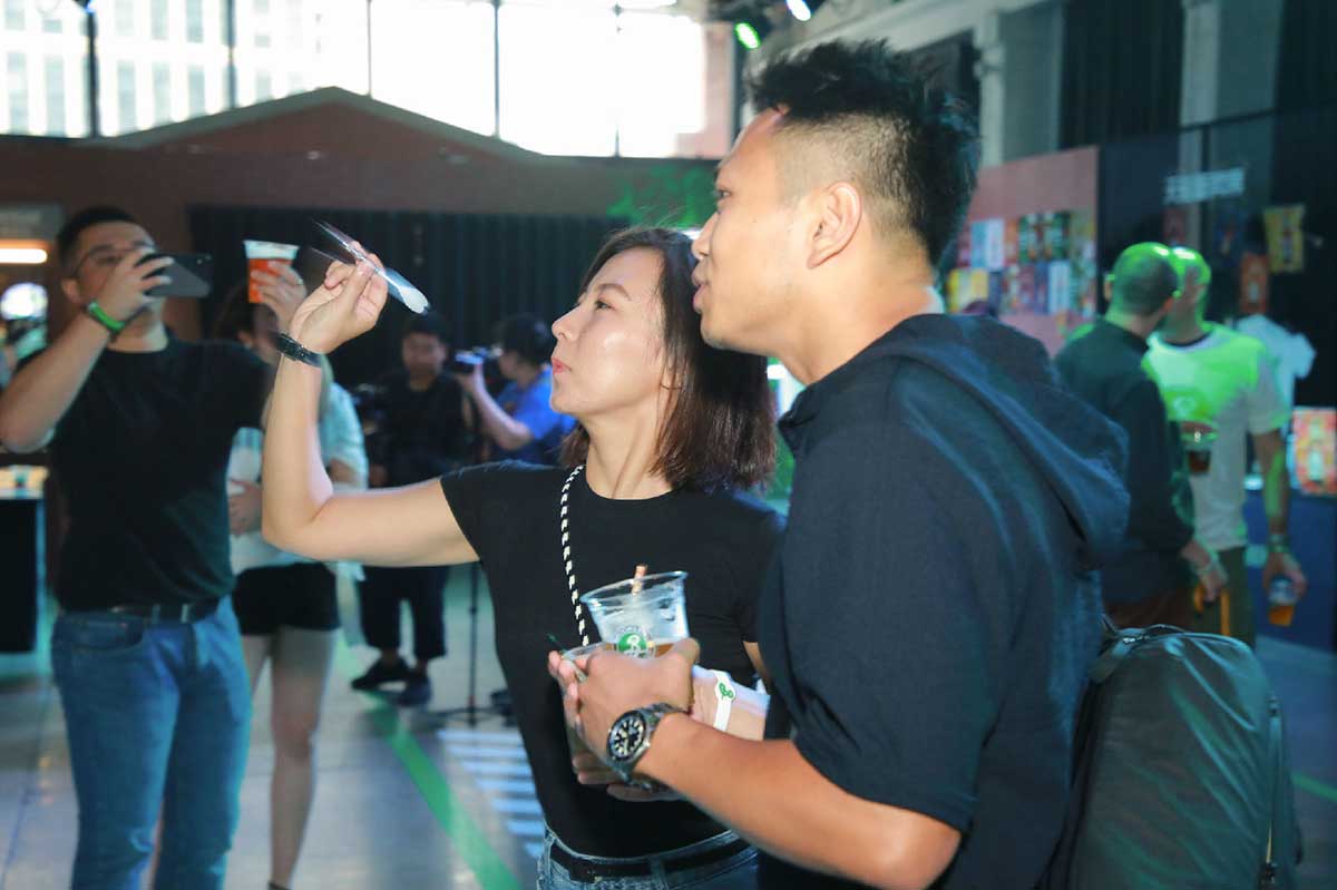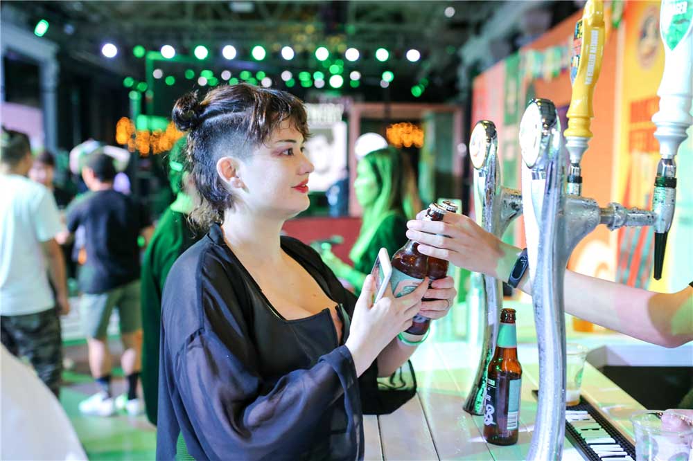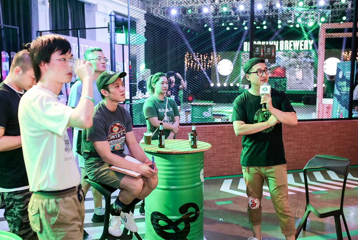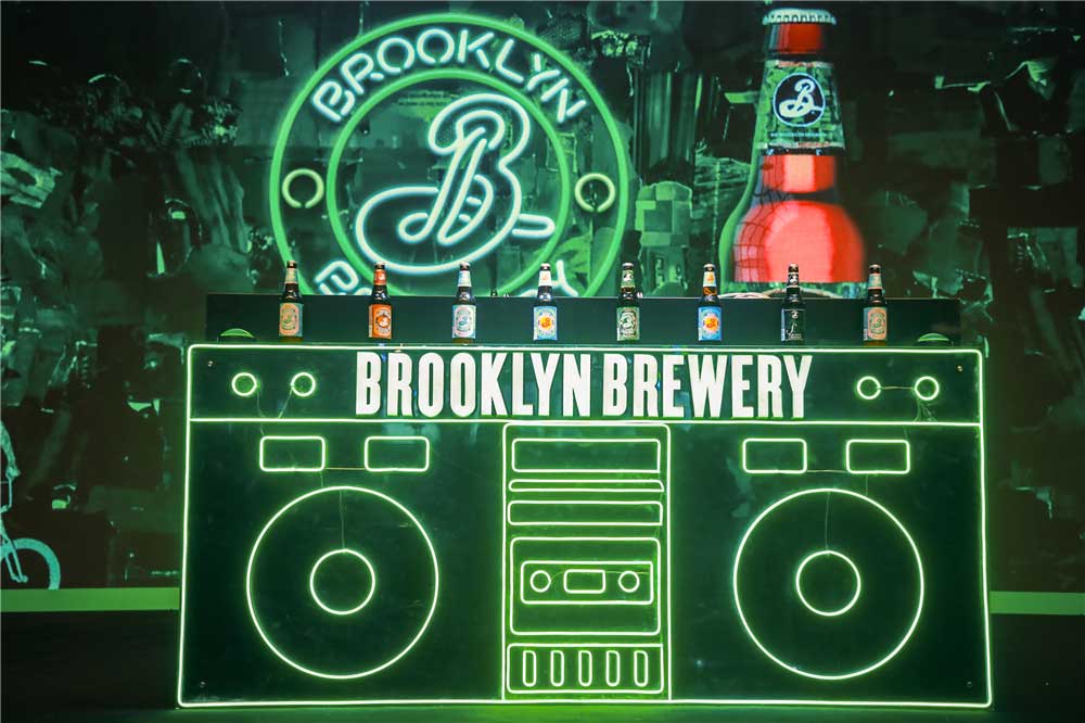 以独到的涂鸦等布鲁克林区文化元素为基础,此次发布会现场以绿色和黑色为核心主线色调,并通过砖墙等装饰元素提升了整体视觉效果,由著名平面设计师米尔顿·格拉泽(Milton Glaser)打造的“手写B字”更是随处可见,完美呈现了布鲁克林精酿啤酒的随性与张力。