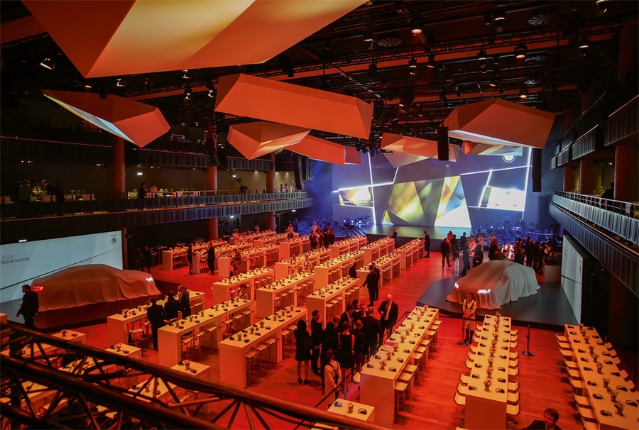 活动现场的整体设计源自新的斯柯达Superb的设计语言,该语言以富有表现力和醒目的形式,同时吸收了捷克立体派艺术的传统,引用了捷克玻璃艺术品中的水晶饰品风格。