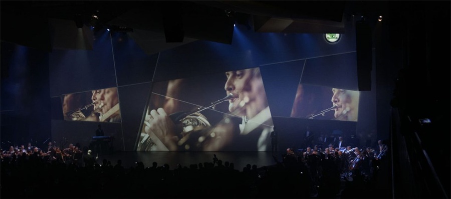前期录制的乐团音乐家的视频被编辑到现场的背景视频之中,结果是一个舞台表演,将电影,灯光,真实的主角和车辆交织在一起,并创造出情感的影像。