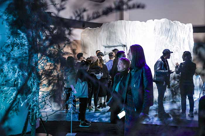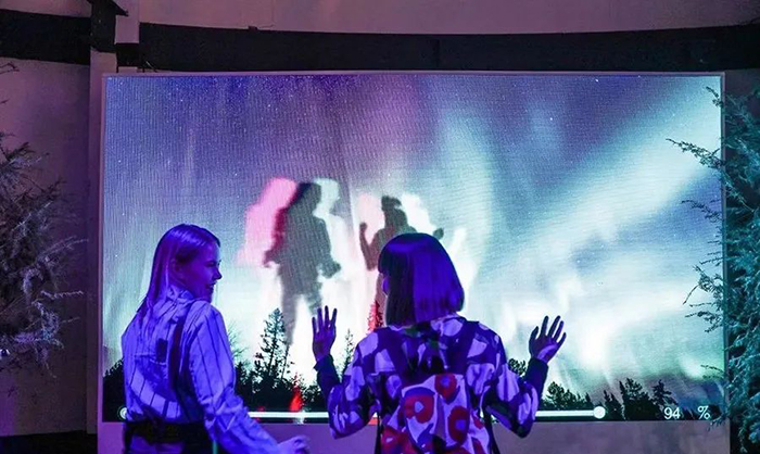 体验区的这一站,以“Live in the Aurora”为主题,当参与者到达指定位置后,屏幕中将出现自己的剪影,并可以随着跃动的极光,尽情舞动肢体,在这其中仿佛能与自然产生某种奇妙的联结。