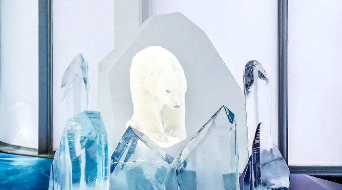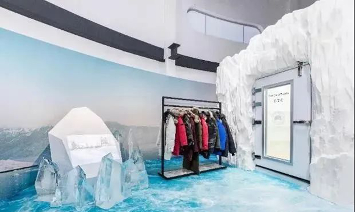 这一站的体验区,它的四周都放置有真实的冰块,瞬间将参与者带入寒冷的北境。“致敬北境”主题呈现了作为PBI北极熊国际协会的长期合作伙伴,加拿大鹅一直密切关注着北极的自然生态。