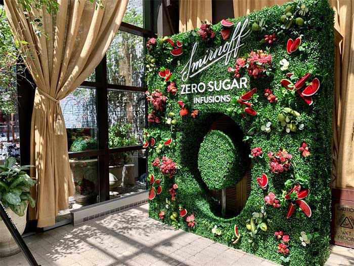 斯米诺(Smirnoff)是世界上最大的伏特加品牌,这是一款超级流畅的伏特加,具有经典的味道,激发了全世界其他品种的伏特加酒。此次斯米诺(Smirnoff)伏特加新品发布会活动现场,一面花艺与水果结合的形象展示墙引起了参会宾客的注意,成为一个极佳的拍照打卡点。形象展示墙上的西瓜、草莓、柠檬等水果元素装饰栩栩如生,相当逼真,让人不禁想顺手采摘下来品尝一番。