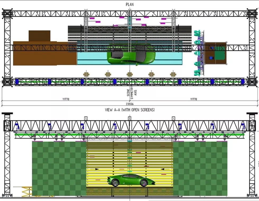 为了让展示汽车的环节更加的炫目,使用了特别制作的视频内容,将现实世界和数字世界联系在一起。在几分钟里,观众看着当晚的主角兰博基尼Huracan EVO在他们的眼前诞生。它克服了来自数字世界和日常生活的界限,渗透到了真实的状态中。