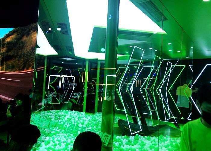 性能不设限体验区:如果你是性能控,现场利用跑步机搭建的互动装置值得一试,灵感来源于第三代名爵6的赛道基因与Super Sport超级运动模式,你在跑步机上跑得越快,空间内海洋球也会飞得越高,让你直观感受“10万级最强小钢炮”第三代名爵6带来的速度快感。