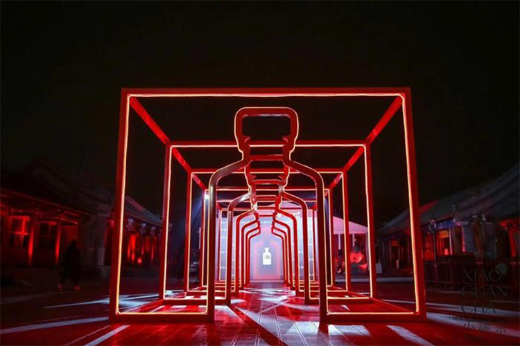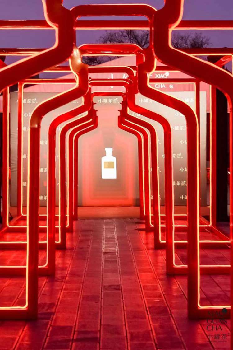 本次活动现场,可谓一次文化名人和潮流先锋云集的时尚大秀。恢弘大气的“光影走廊”惊现活动外场,将客人们引领进一个别样的世界、别样的夜晚。光影走廊以正红为主色,将即将发布的小罐茶0酒精大红袍味士忌的独特造型作为建筑整体,在层层延展中创造无限的空间感。人们流连其中,目眩神迷,仿佛真的在时空和历史之中游走,直至抵达发布会现场。