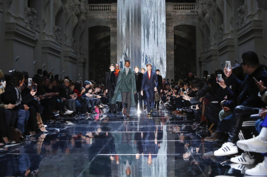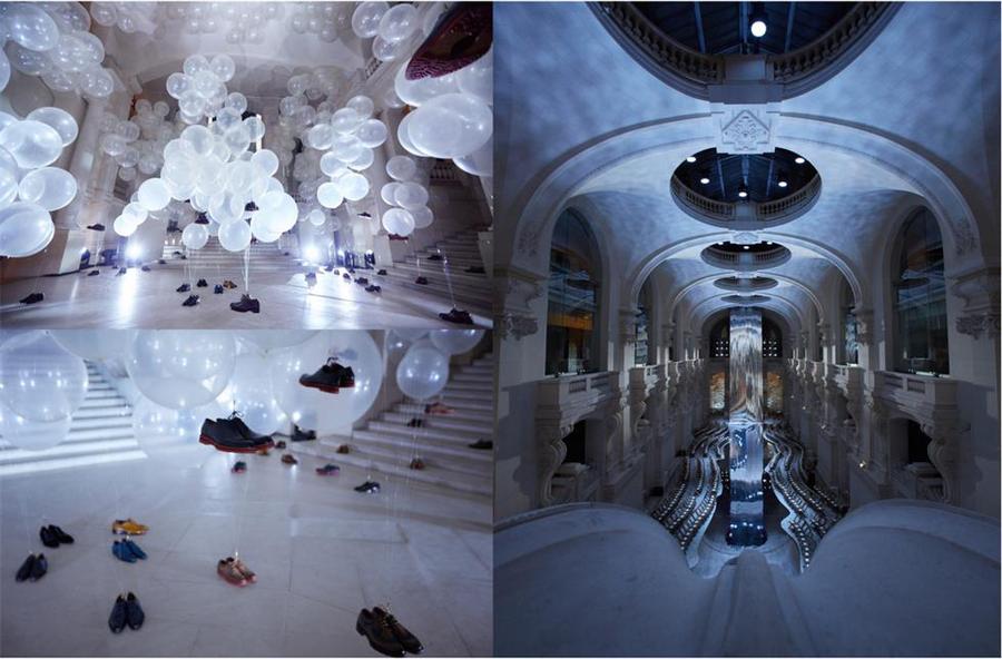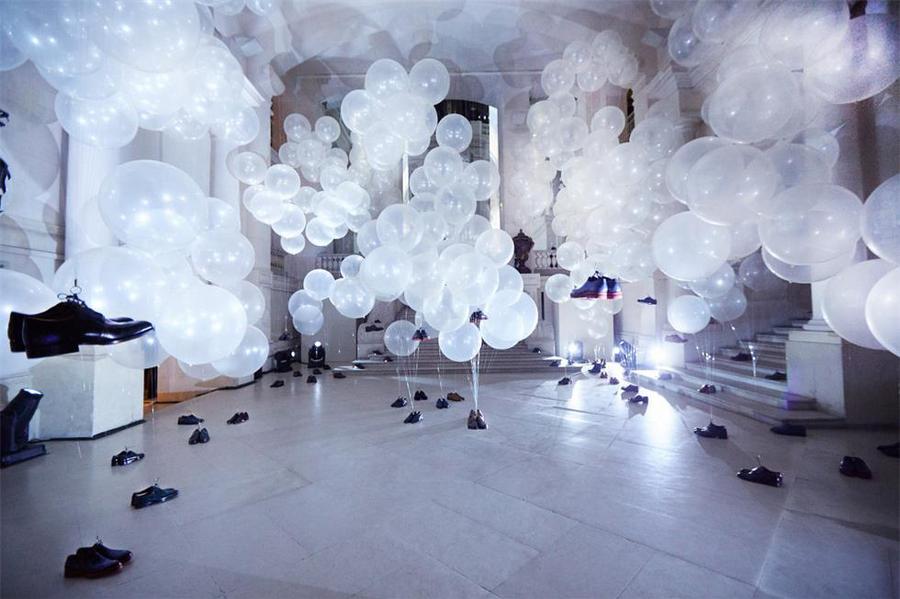 Berluti(伯尔鲁帝),是路威酩轩(LVMH)集团旗下男士奢侈品品牌,1895年成立于法国巴黎,经由四代家族成员经营,拥有历史悠久的制鞋技艺、专利Venezia皮革和Patina古法染色工艺。品牌结合法国创新设计与意大利品质皮革,为绅士们提供匠心独具的全系列产品,由最初的男士鞋履延伸至皮具、成衣、配饰等不同领域。除成品系列,Berluti更提供量脚定制的Bespoke服务,从头到脚为男士打造优雅、简洁、舒适及实用于一体的个性化服饰。此次秋冬发布会现场用大量的透明气球装饰,挂在气球下的鞋子有种想要飞得更高的迫切希望。
