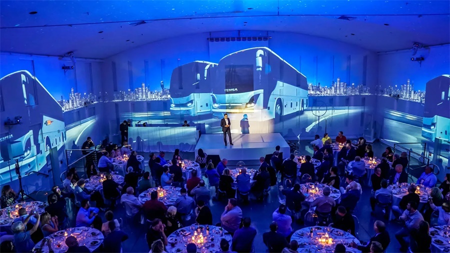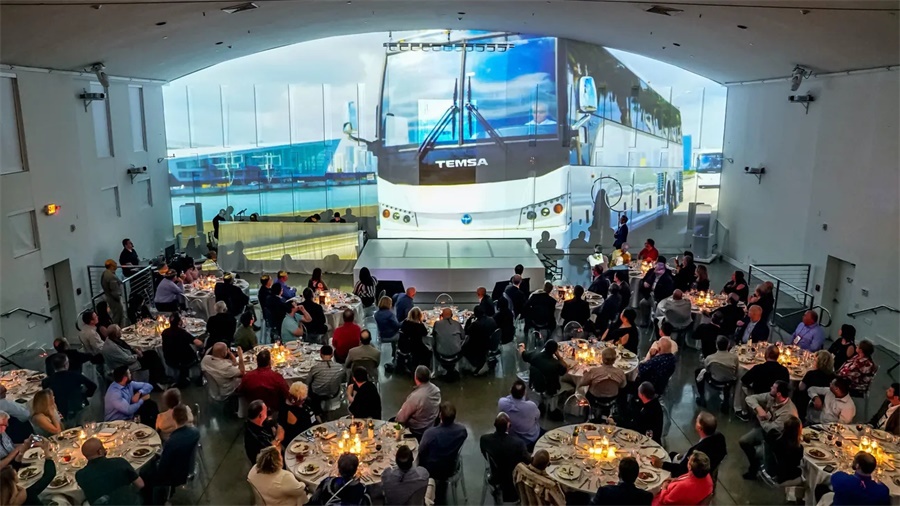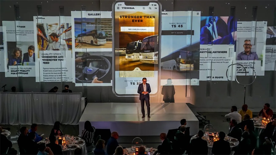 国际知名的豪华客车制造商Temsa选择通过一场令人难忘的视觉体验,向他们的VIP客户宣布了Temsa北美的推出。Temsa专注于品牌推广和独特的产品展示,带领客户和客人进行一场视觉之旅,让客人沉浸在公司品牌中,然后进行一场虚拟的美国“巴士之旅”。Temsa用一种令人惊叹的增强现实技术来启动这次活动,他们的新巴士在挤满客人的房间里360度旅行,通过隧道,通过桥梁,经过风景,穿越整个北美的城市。正式发布会结束后,Temsa还提供了完全沉浸式的舞会视觉效果,为他们的客人举办了一场舞会派对。五星级的美食和受欢迎的DJ让客人们彻夜狂欢。Temsa对这次活动感到非常高兴,并对活动策划公司用一种特殊的方式来强化他们强大的“比以往更强大”的品牌信息而感到满意。