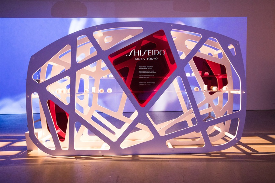 为了庆祝资生堂春季肌肤新生力系列上市,举办了一场媒体活动,活动现场在设计上体现了该系列中使用的神经科学技术。活动在纽约唐人街393号举行,根据这里的环境结构活动设计了9米长、从地板到天花板的投影展示装置,将来到现场的客人完整地包裹起来。活动现场的设计融合了现代技术,其中包括3个沉浸式无水式SPA体验亭。沉浸式的体验,通过使用光和芳香疗法,引导冥想和水晶治疗,让客人通过平静的氛围重新启动和连接他们的感官。在现场中心的网状装置展示了受神经科学系统启发的产品,并为我们的客人提供了葡萄酒和现代日本料理。
