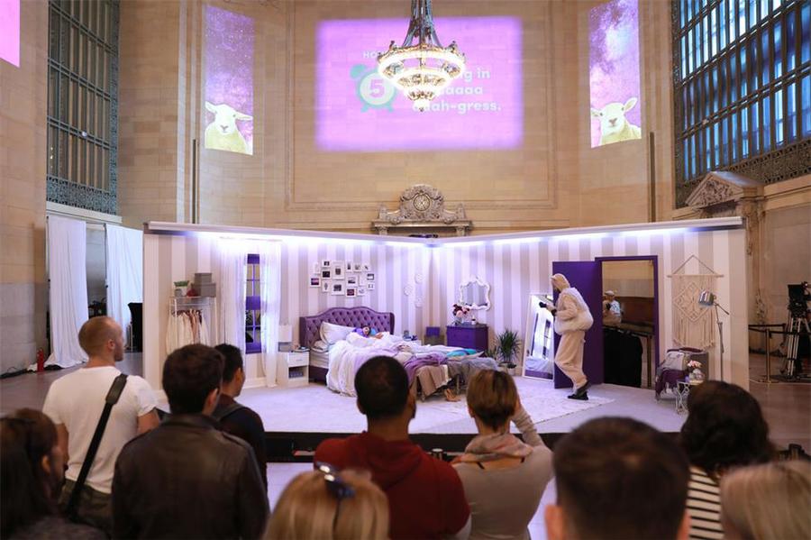 在这个从不睡觉的城市里——在正午,在美国最繁忙的地方——中央车站的范德比尔特大厅——哄人入睡可不是件容易的事。但该品牌欣然接受了这一策划方案,将车站空间改造成一间带有夜间天花板投影的卧室。在那里,“随处即兴”以一种完全出乎意料的方式吸引和向消费者传达了品牌的产品信息。