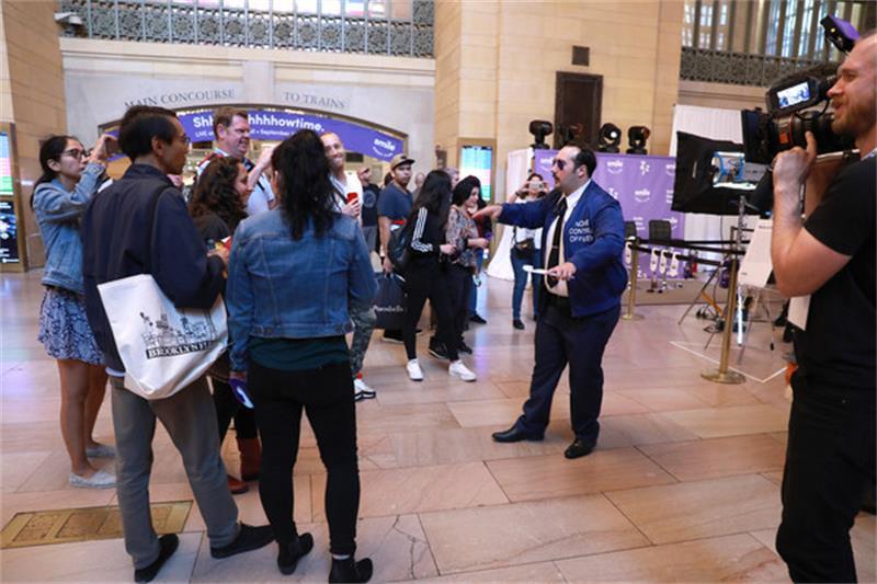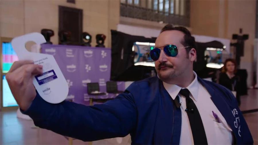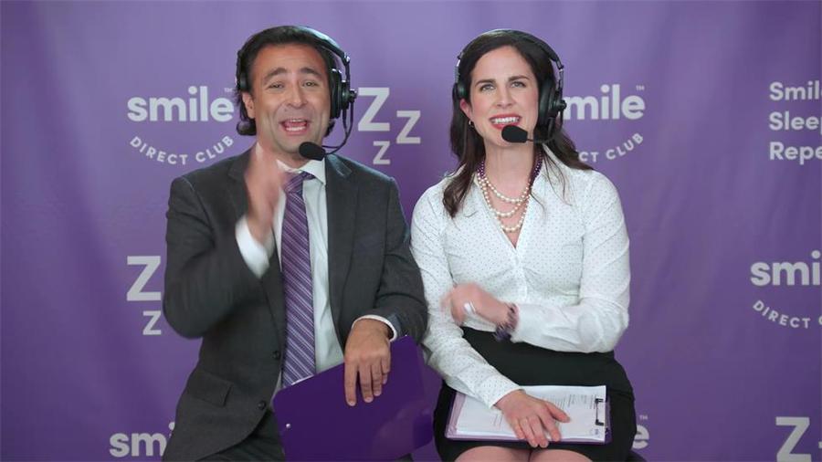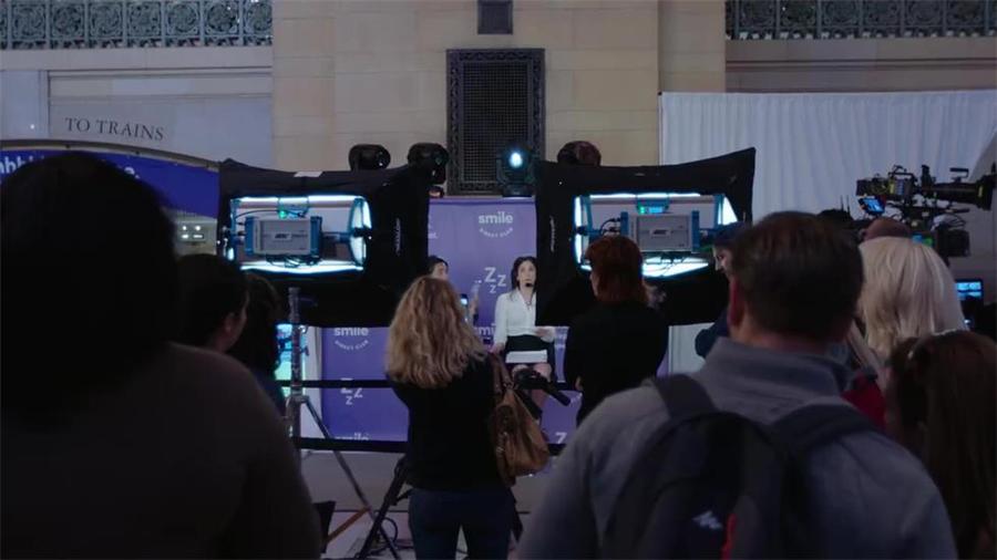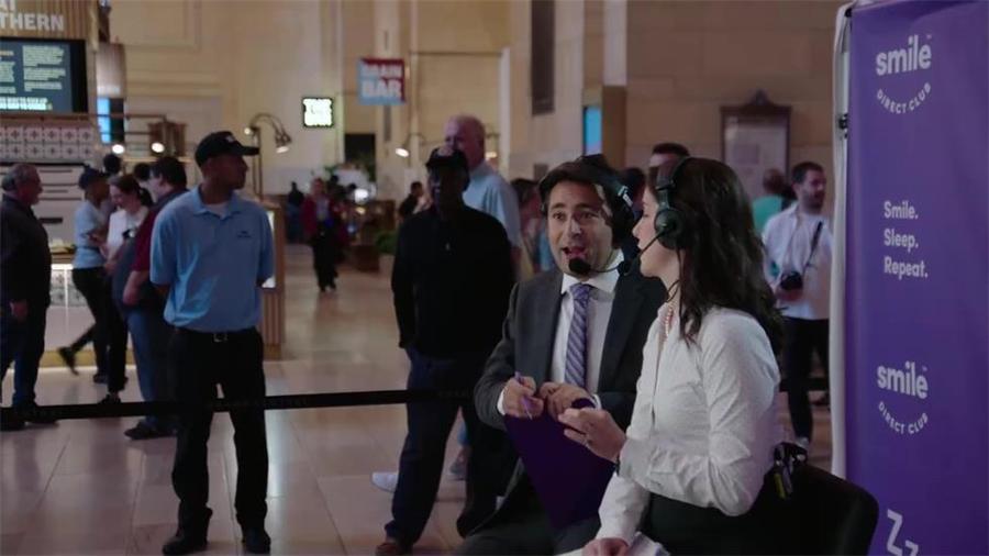 这个发布会的噱头是为了传达“Nighttime Clear Aligners”的关键优点——在连续10个小时的佩戴过程中,它们可以在你睡觉时帮你矫正牙齿。为了证明这一点,SmileDirectClub在纽约繁华的火车站搭建了一个分店,并与纽约著名的喜剧剧团“随处即兴”一起,共同策划执行了一场10小时的“睡眠表演”。
