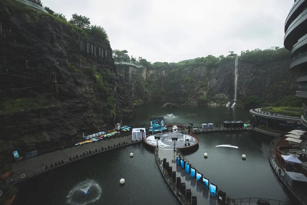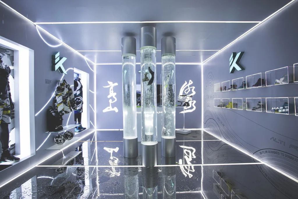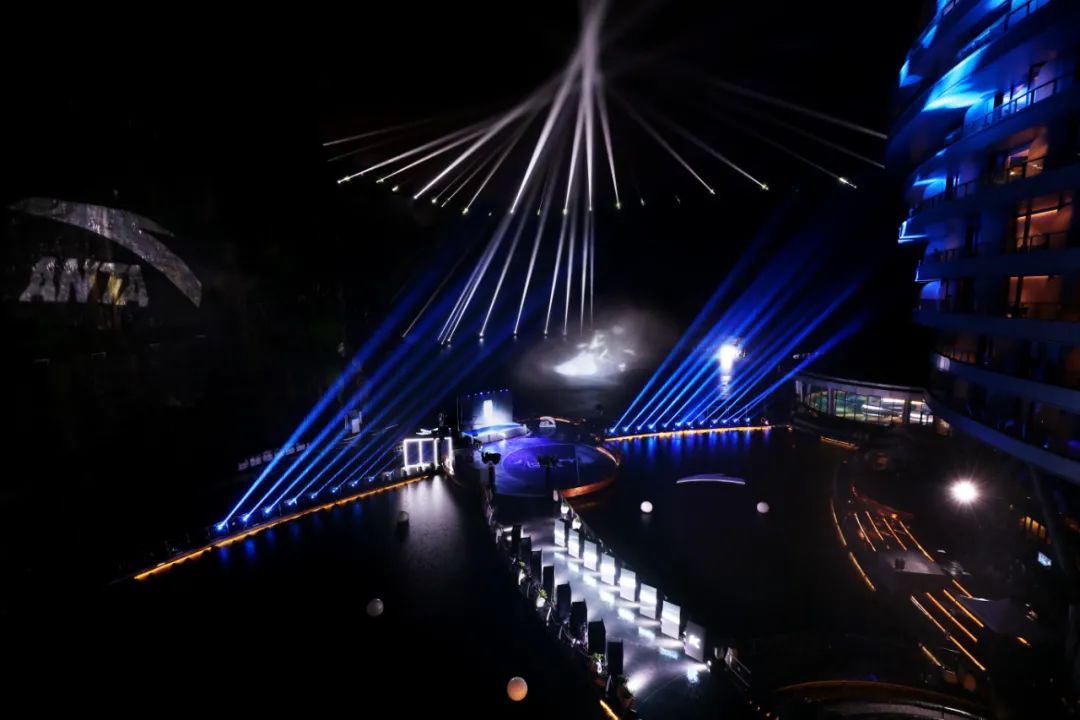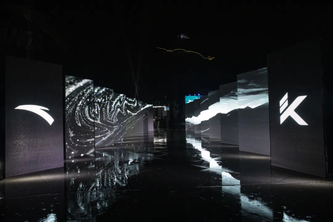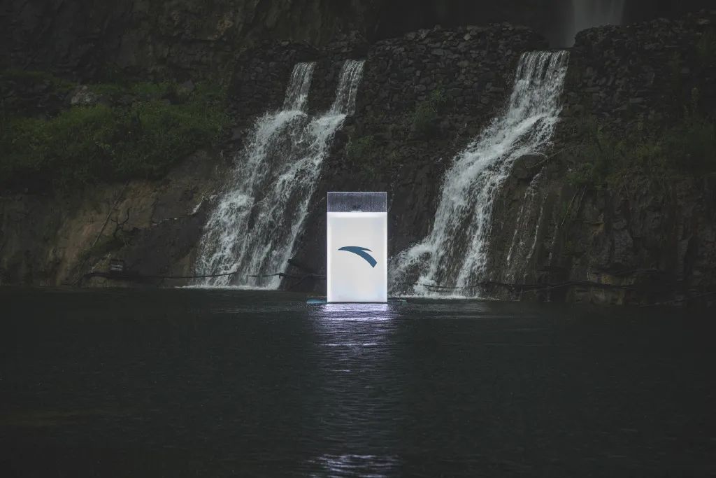 安踏新品发布会之所以选择在依附深坑崖壁和瀑布而建的深坑酒店,是因为与KT6“高山流水”的产品主题息息相关。在发布会现场,将山水之间铺开,作为水幕巨型画卷,呈现了一场与产品主题完美契合的3D精彩水幕表演。为来宾带来沉浸式体验创造高山流水之意境。
