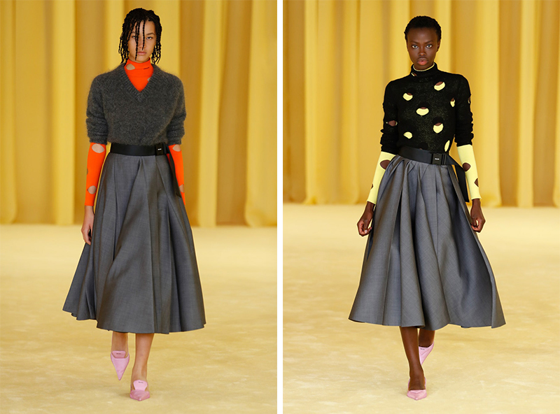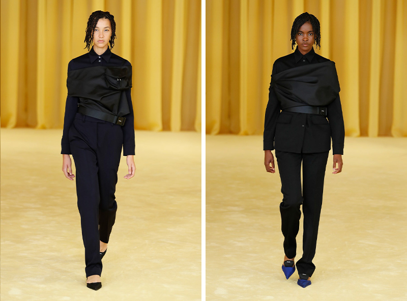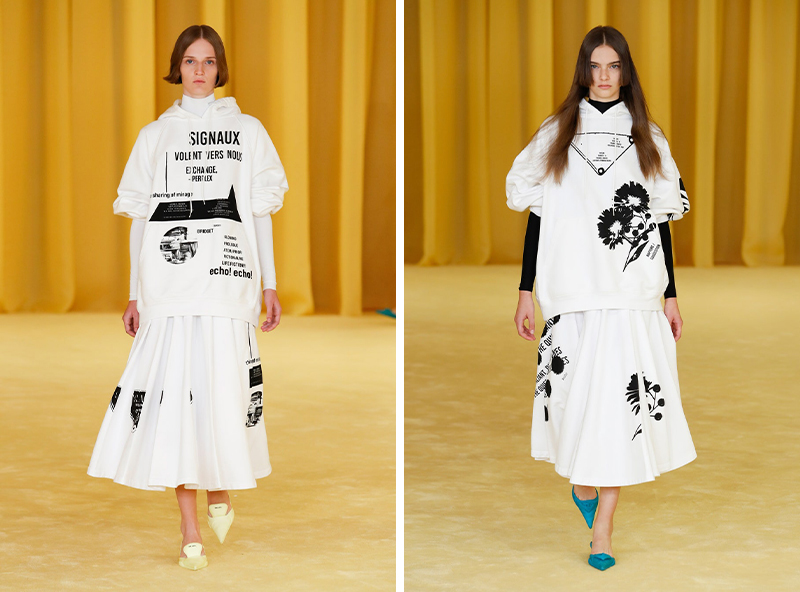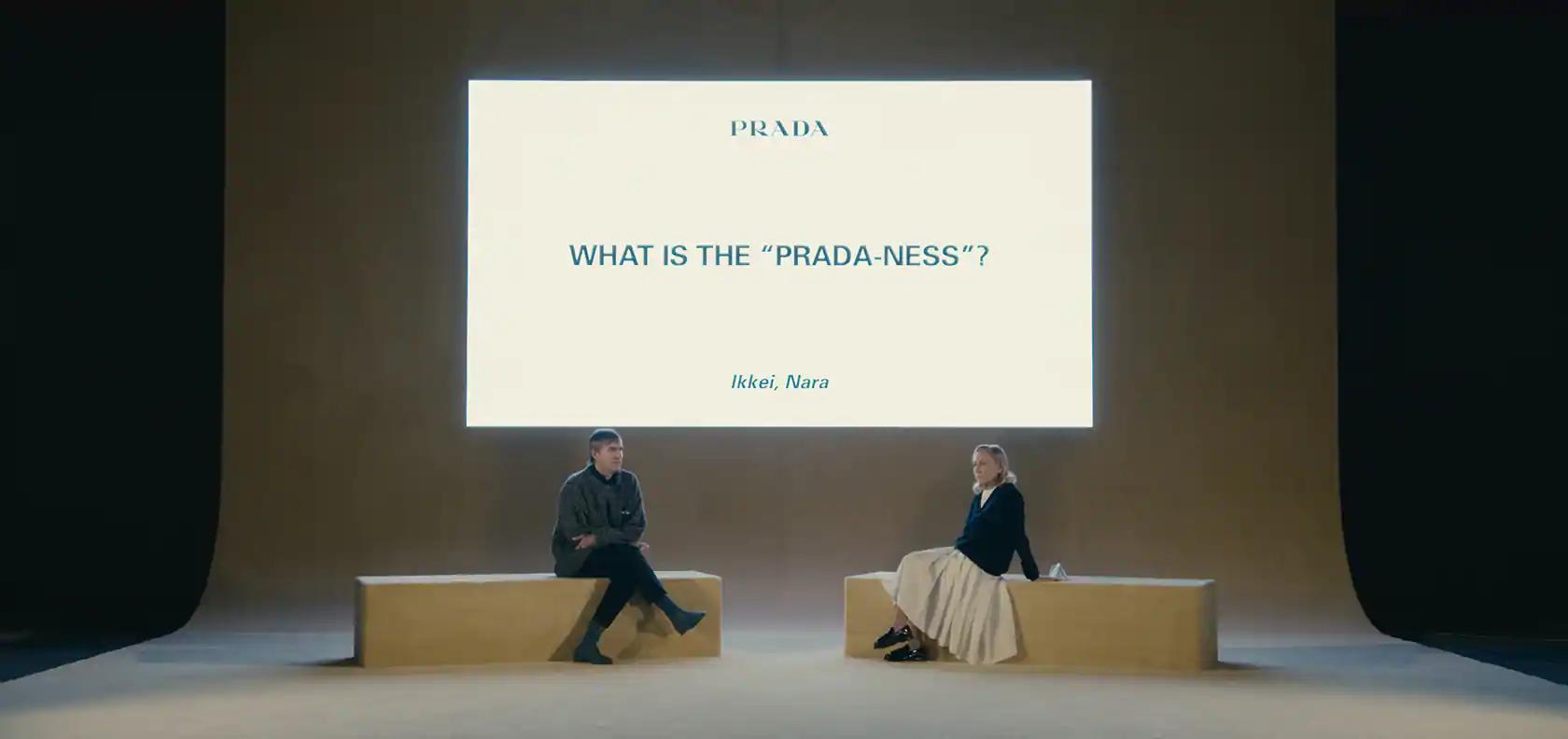另外,品牌还把采访环节面向全球观众开放——提前在官网征集了问题,秀后,两位设计师合体对其中部分问题做出了回答。这是 Prada 在疫情背景下探索出的全新互动方式,也是很 Prada 的方式。
