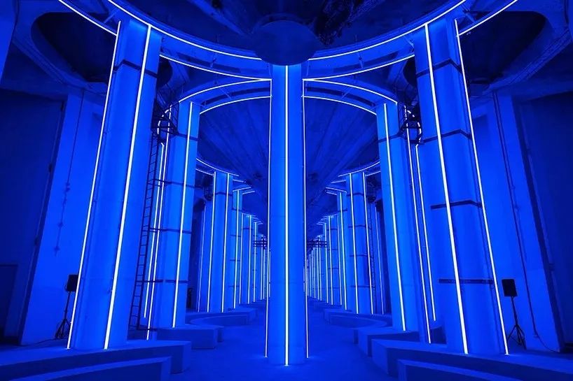 民生码头8万吨筒仓是亚洲最大的筒仓之一,以前是小麦和谷物的仓库。AMO和prada将其描述为一个“无意的纪念碑”,建筑的原始特征被保留下来,作为装置的一部分——名为“照亮的vista”。霓虹灯的排列勾勒出大厅的工业形式,并产生一个发光的光线,闪烁在微妙的柔和的颜色。