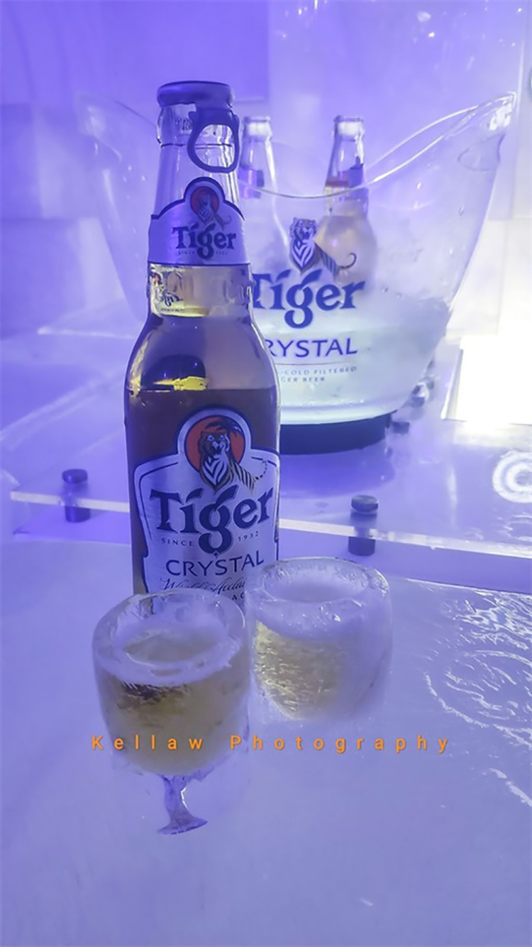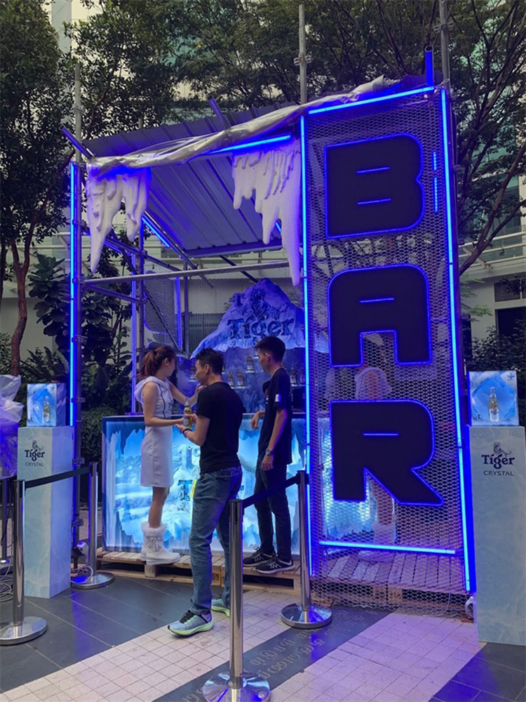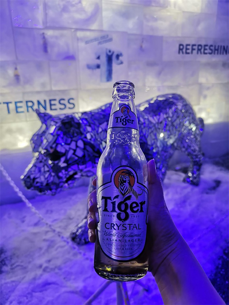 冰吧由真正的冰建造而成,是客人们第一次品尝新式老虎晶纯的绝佳地点。在品尝清爽易喝的啤酒的同时,客人还参观了冷藏室的内部,里面摆满了冰雕和其他真正的老虎啤酒风格的艺术装置。
