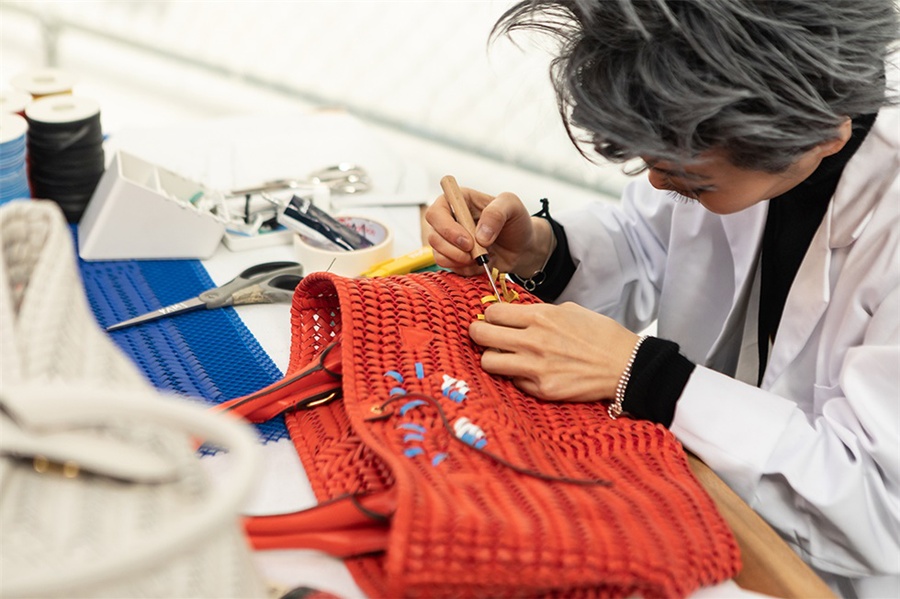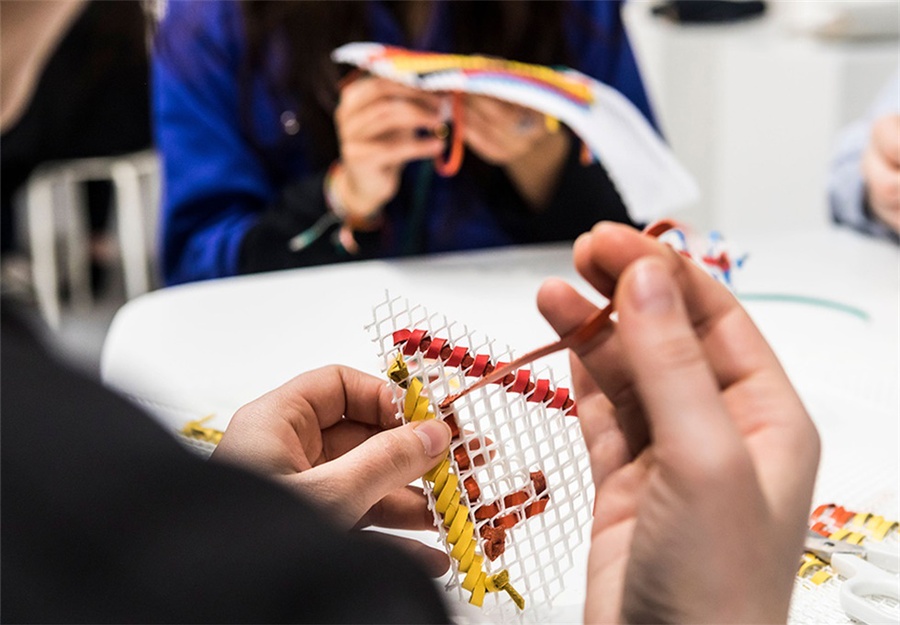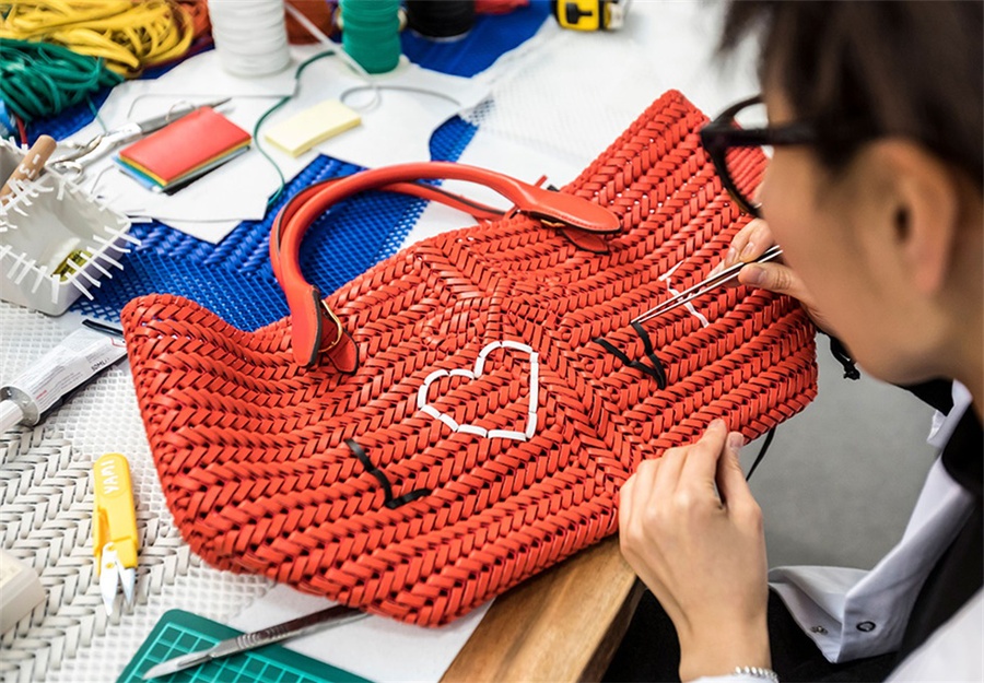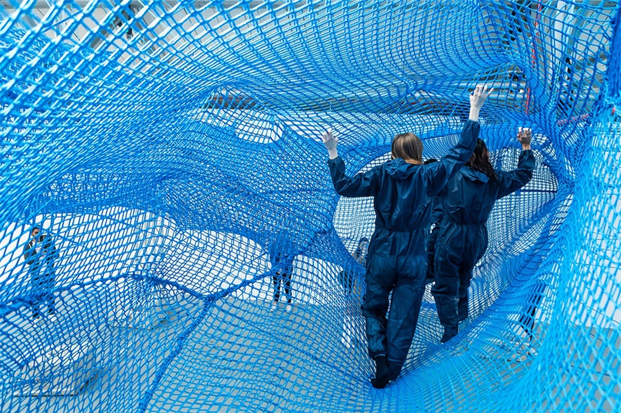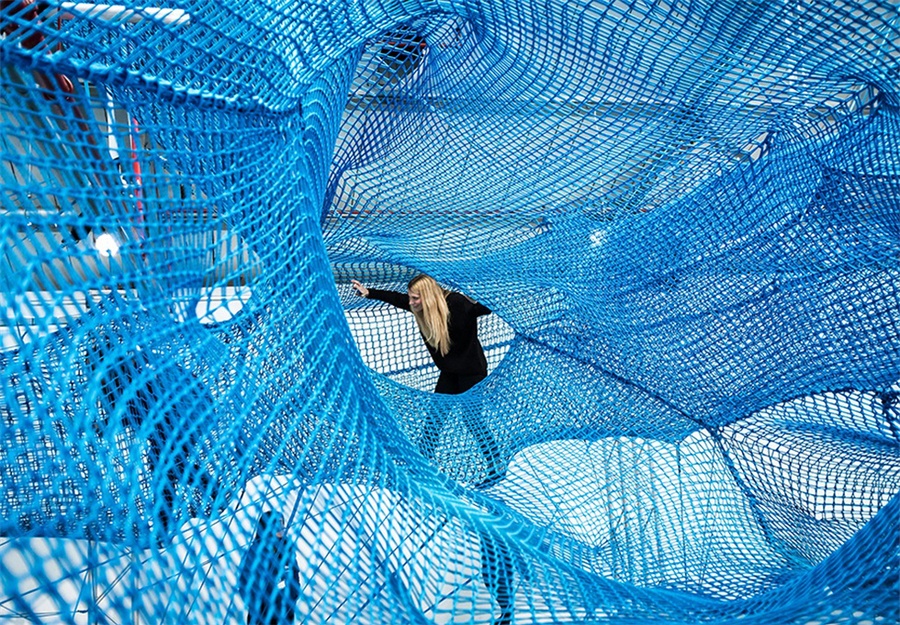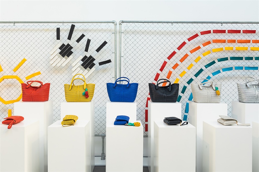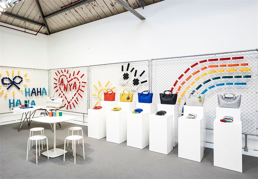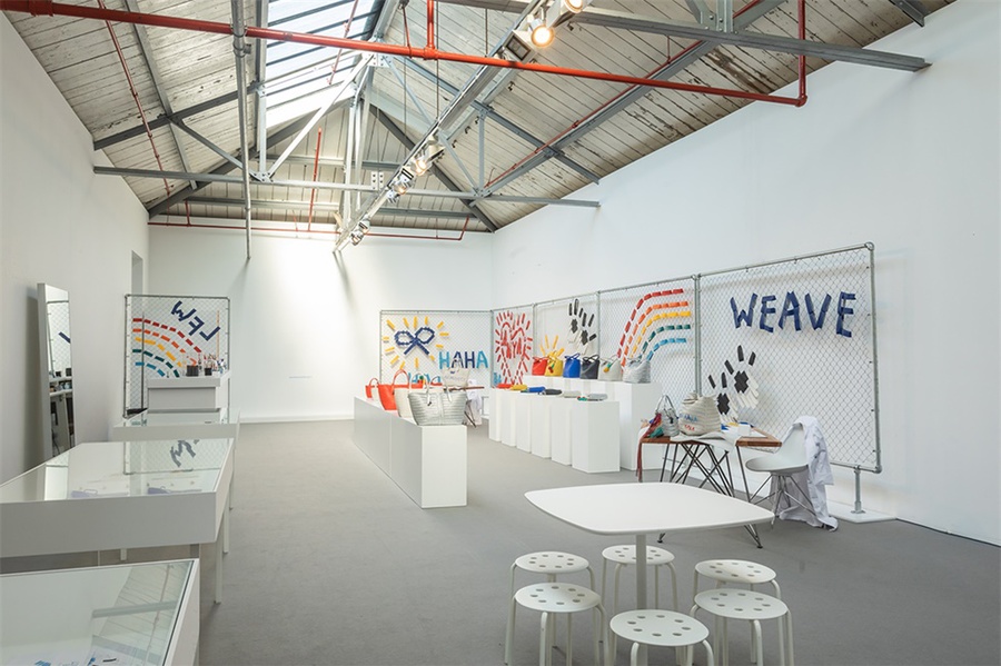 安雅·希德玛芝 (Anya Hindmarch) 是一个奢侈品品牌。为了庆祝安雅·希德玛芝新的尼森(Neeson)系列手袋的发布,一个名叫“编织”的沉浸式艺术装置发布会,于伦敦时装周期间在布鲁尔街停车场举行,这是由艺术家团体“精灵/使用”设计制作的互动装置艺术品,客人可以进入到装置内部去体验编织作品。
