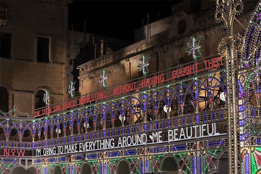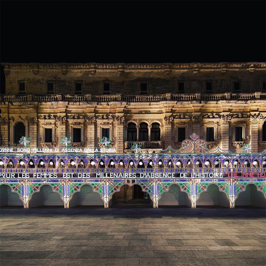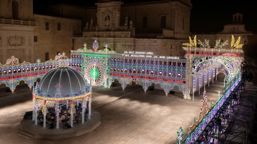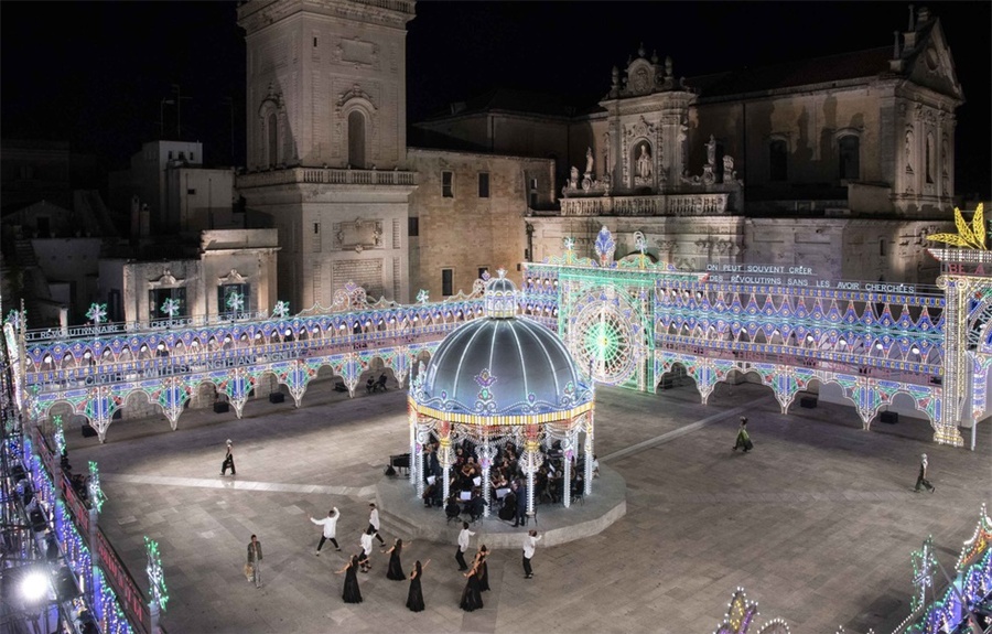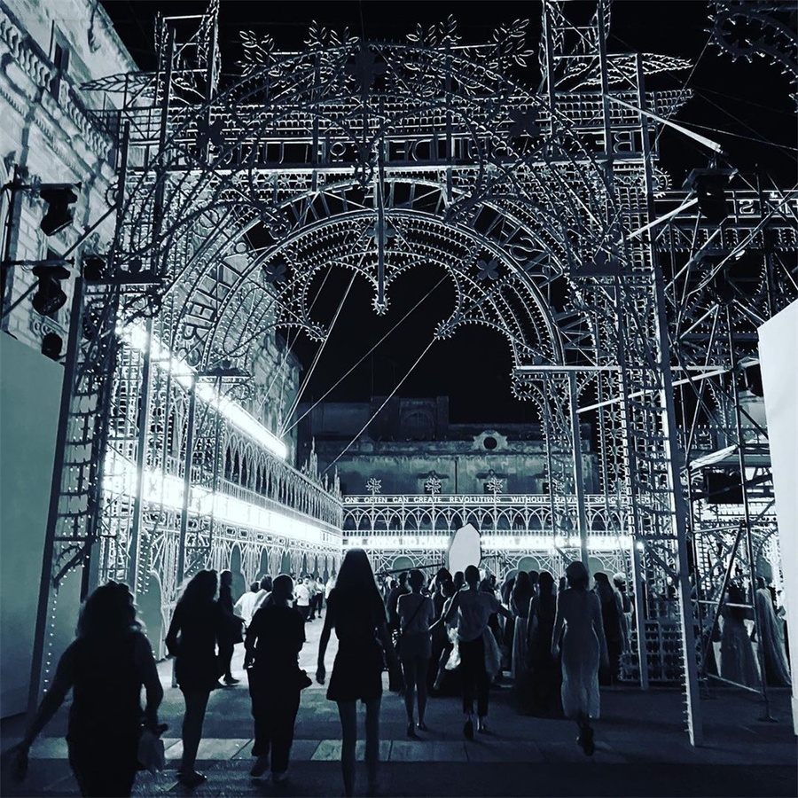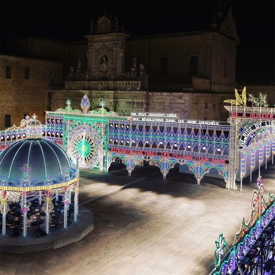 迪奥2021年的巡航系列在意大利莱切市中心的大教堂广场举办了一场令人眼花缭乱的无观众观看的时装秀。模特们严格遵循社交距离进行表演。一个剧场舞台被搭建起来,布景完全采用了意大利当地的纹饰图案装饰了整个现场,向意大利工艺美术致敬。一个完整的、完全戴着口罩的管弦乐队现场演奏,歌手们现场表演,所有这一切都是为了屏幕前的观众,他们在世界各地通过流媒体观看演出。